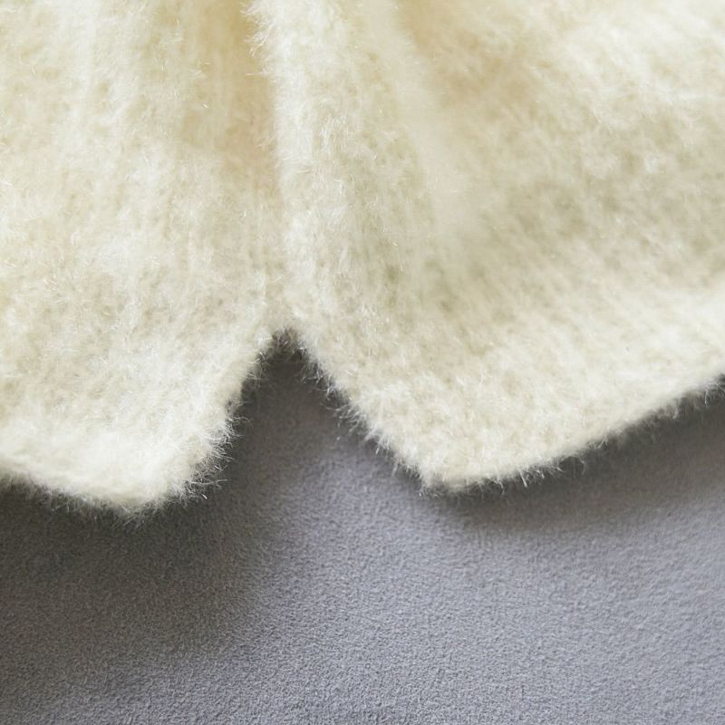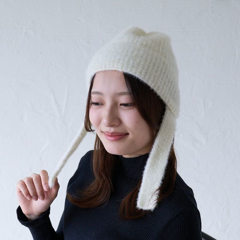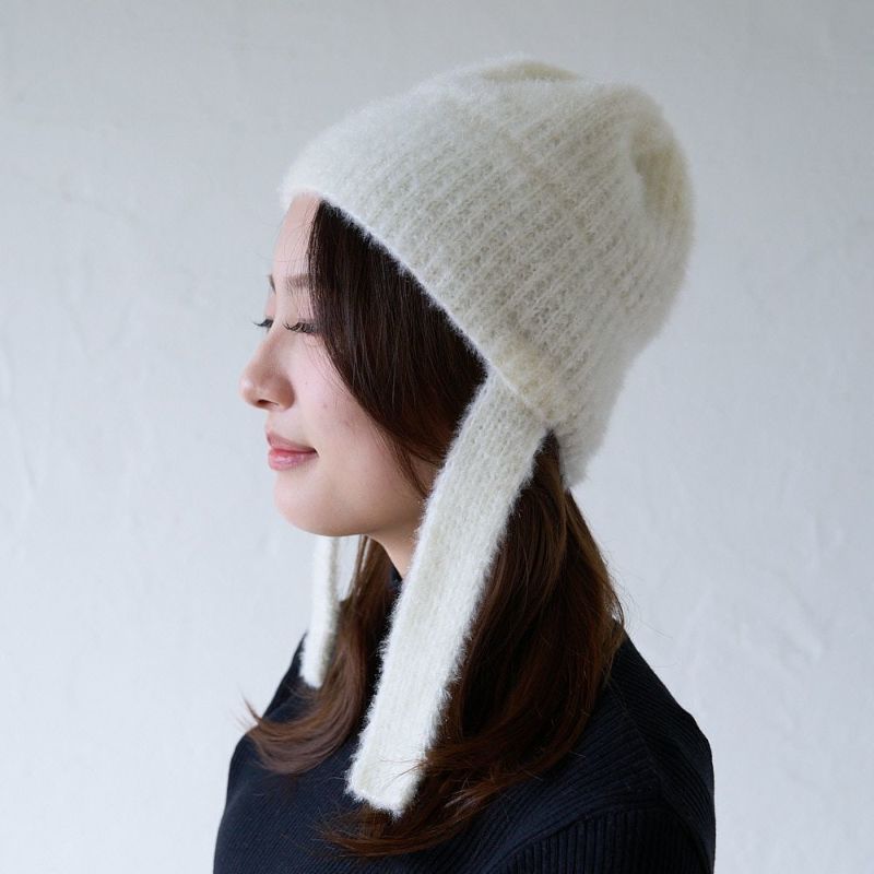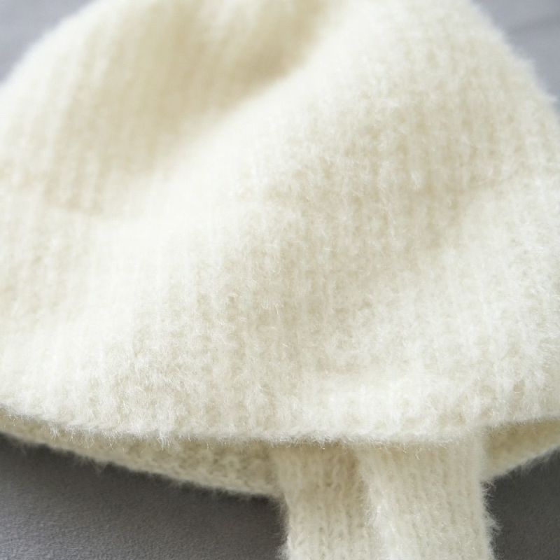 驚くほど軽く、長時間着ていても頭に負担がかかりにくいのが特徴。ニット素材にありがちな「毛玉問題」も気になりません。毛足はやわらかいのに型崩れしにくく、日常的に頼れる1枚です。