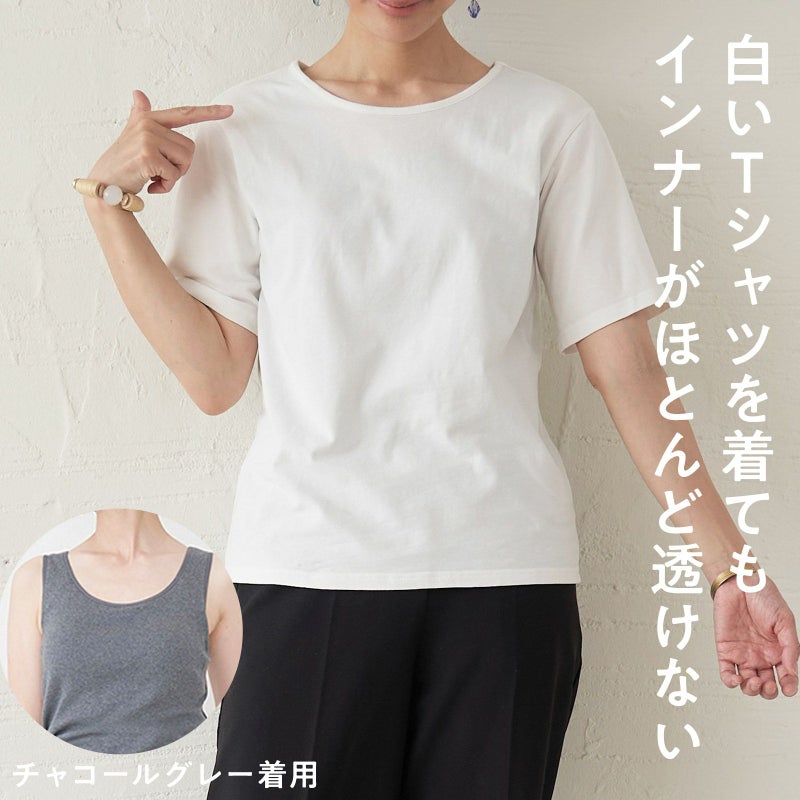 季節を通して、透けないタンクトップのインナーは必須。