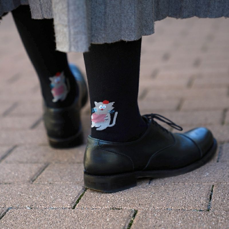 正面から見たら普通の無地のタイツですが、後ろの足元にほっこり。