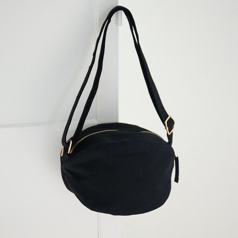 丈夫なキャンバス生地 ころんとポーチMサイズ太紐(キャンバス ブラック)
