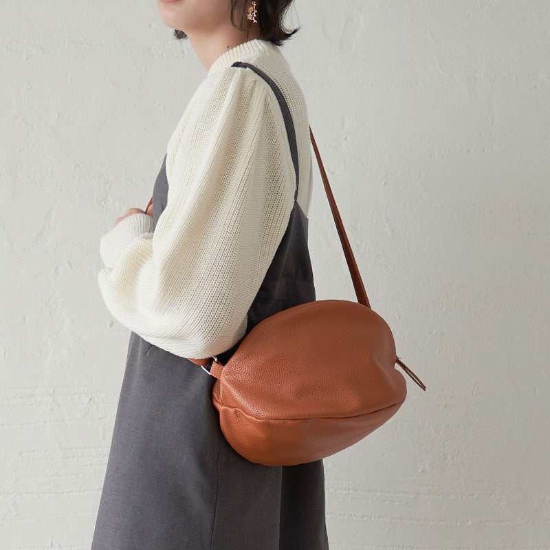 ころんとした見た目もほっこり可愛く大きく開く間口やファスナー開閉にもストレスゼロな使い心地にこだわって作られた一点です。