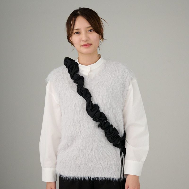 今回新作で持ち手がフリルになっています。紐の長さも自由に調節可能でスポーティと愛らしさの最高なミックスで