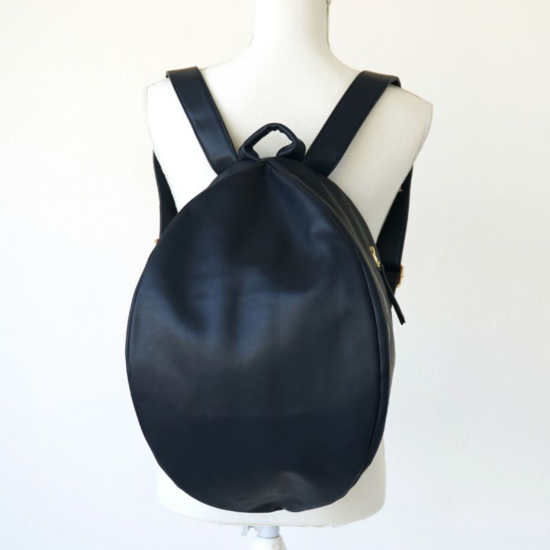 ころんとリュックLは、puレザーできれい目の装いにもフィットします。