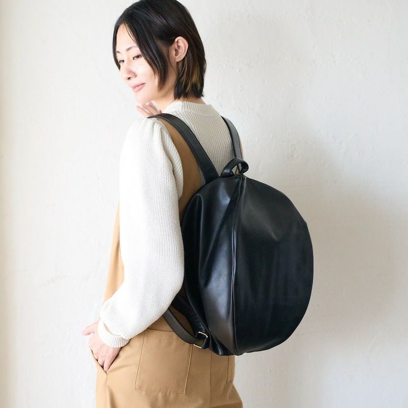 荷物が多い方にとても好評いただいている、ころんとリュック。飾りなどをそぎ落とした「極シンプル」。他には無い個性的なデザインです。