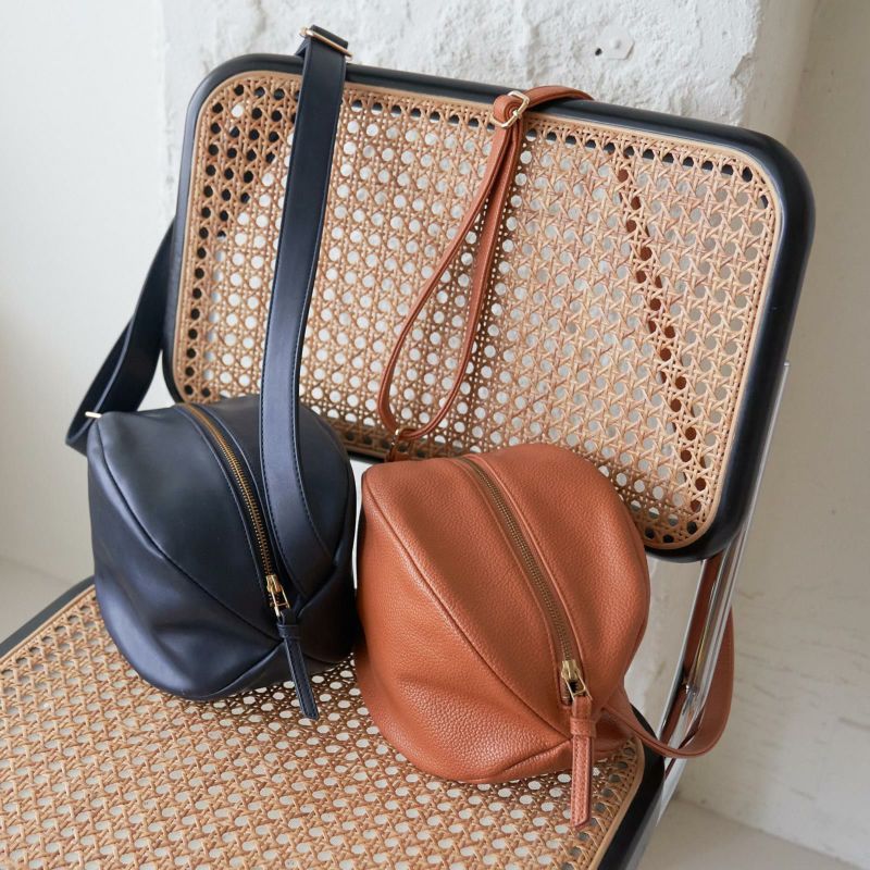 ころんとした見た目もほっこり可愛く大きく開く間口やファスナー開閉にもストレスゼロな使い心地にこだわって作られた一点です。