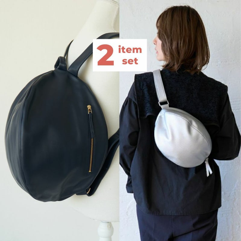色が選べる2点セット ころんとリュックLサイズ(ネイビー)&ころんとポーチMサイズ
