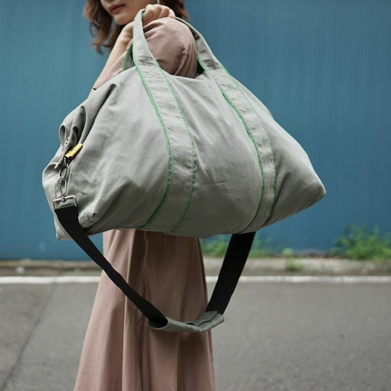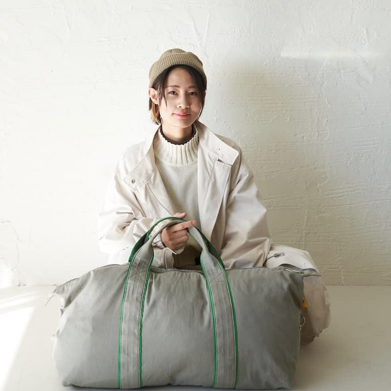 カラーもニュアンスのあるカラーにして奇抜すぎず、お洋服に馴染むボストンバッグです。