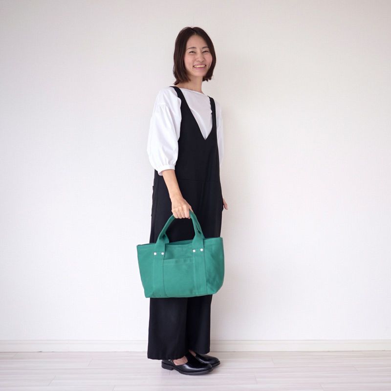 帆布バッグは、ともすれば子どもっぽい印象になりがちですが、「大人が持てる」見た目を大切にしました。