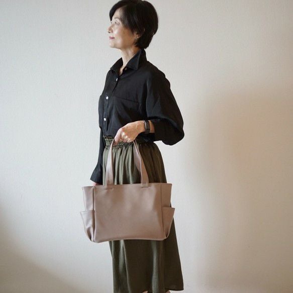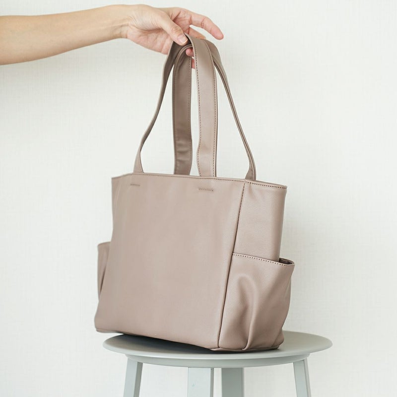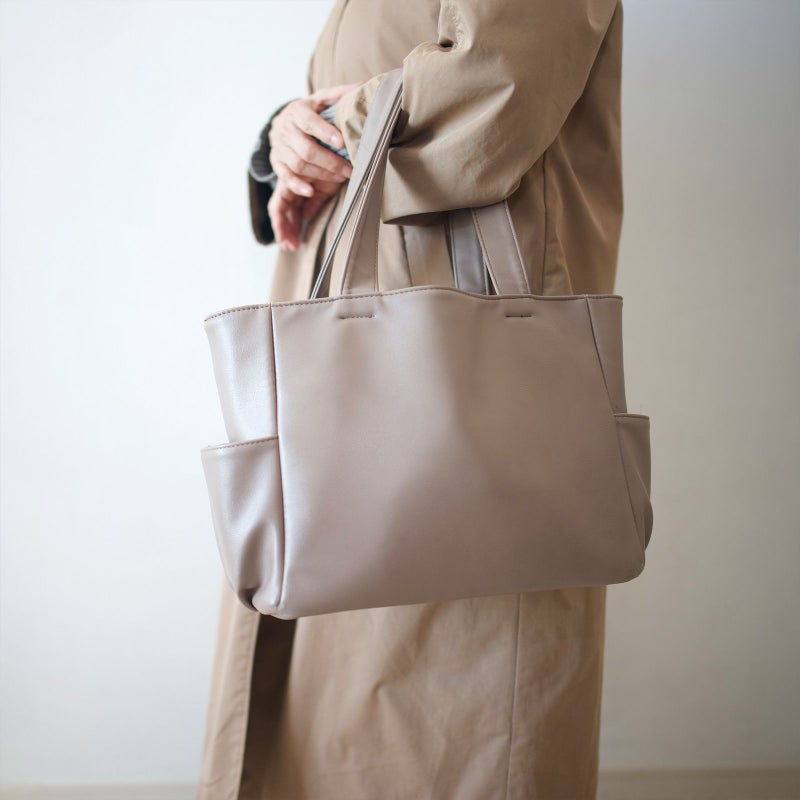 サイドポケ付きトートバッグMサイズ(グレーベージュ)A4サイズ