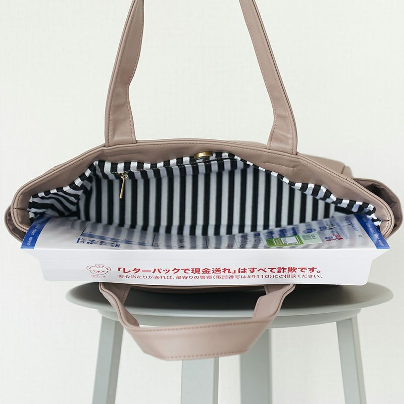 バッグの中の布地=インナーは、ストライプ柄。