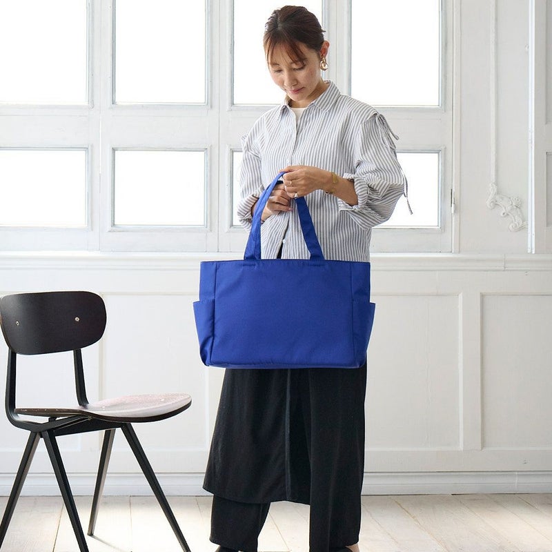 ビジネスにも普段使いにもどんなシーンでも、どんどん物が入って、出し入れが簡単。使い勝手のよい、トートバッグです。