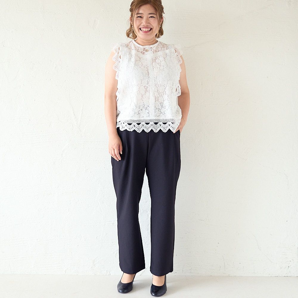 細すぎず太すぎない、計算されたシルエットだから体のラインを拾いすぎず、すっきり見せてくれる“着痩せパンツ”。