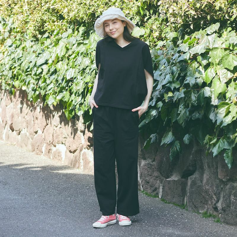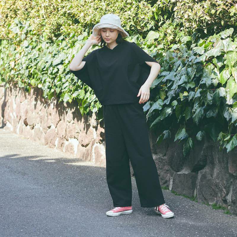 心からリラックス出来る ドルマンTシャツ&パンツ上下セットアップ(ブラック)