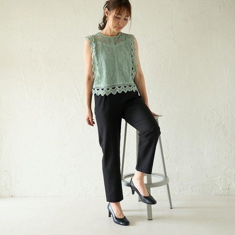 シワになりにくく、軽やかなはき心地。程よくゆとりのあるシルエットで、身体のラインを拾いすぎず、すっきり見せてくれます。