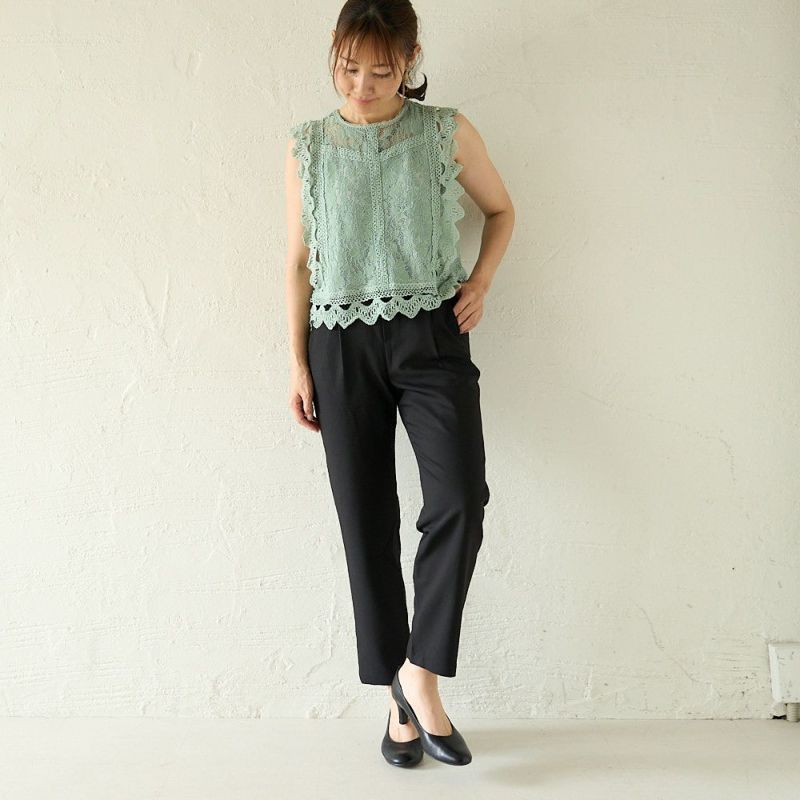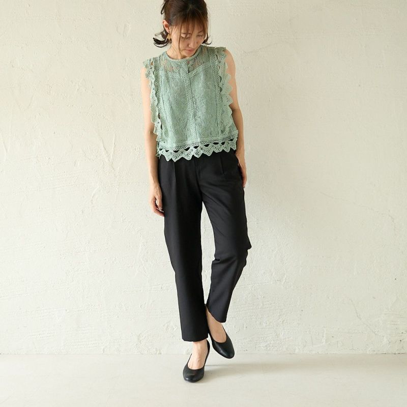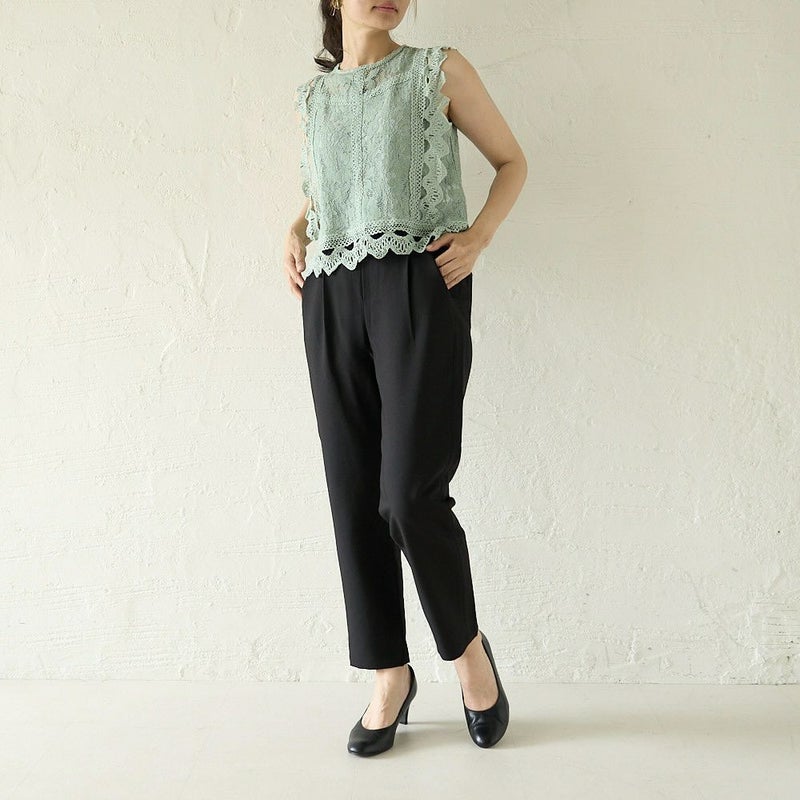 程よいサイズ感のスラりパンツ。もりのがっこうタックパンツ ブラック