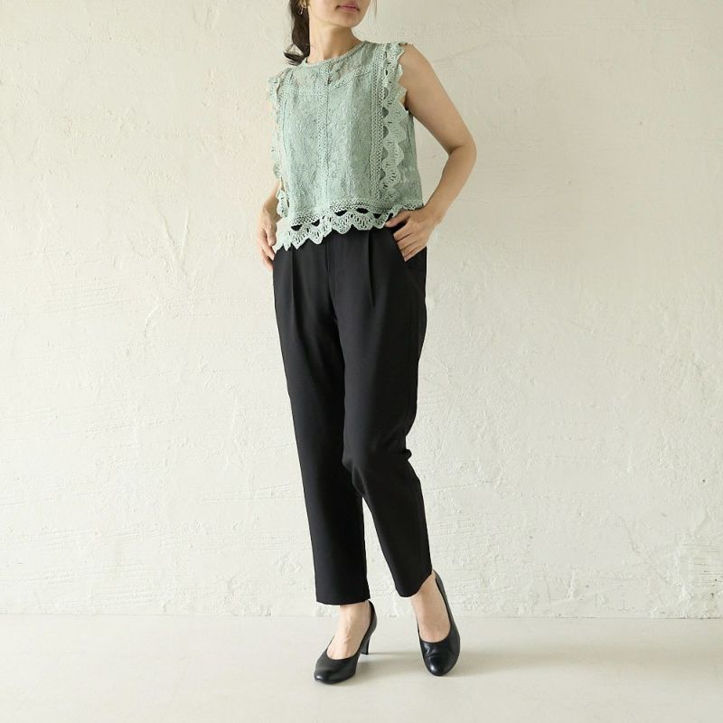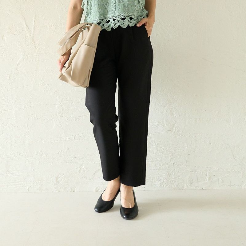 お仕事パンツはこれでOK テパードタックパンツ(ブラック)