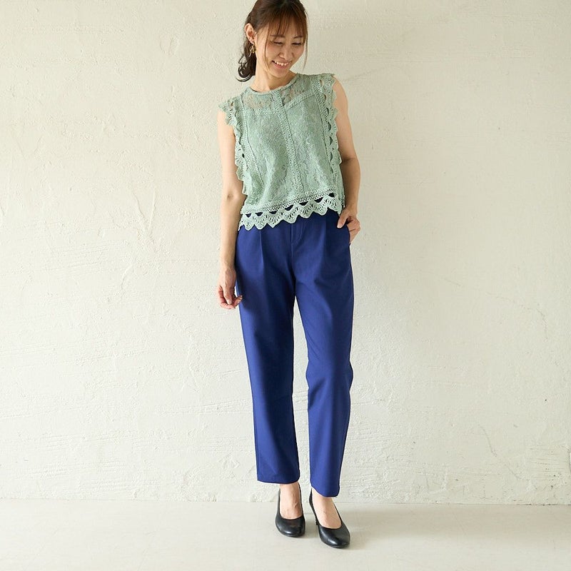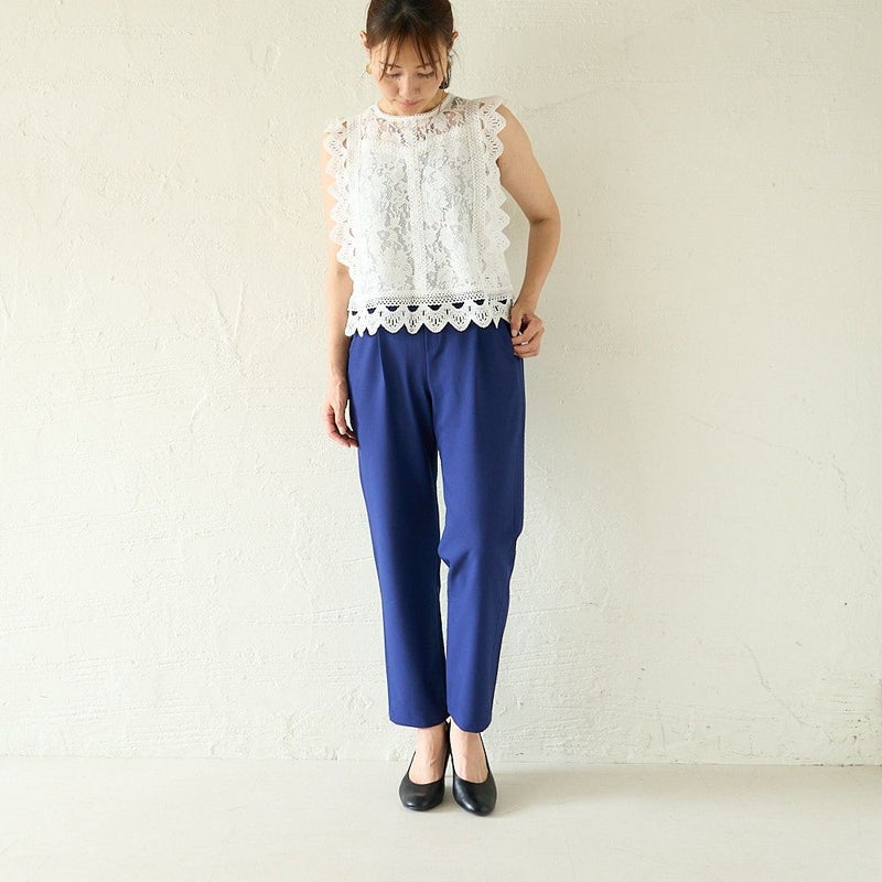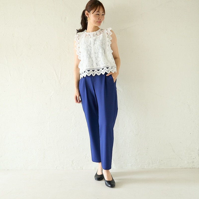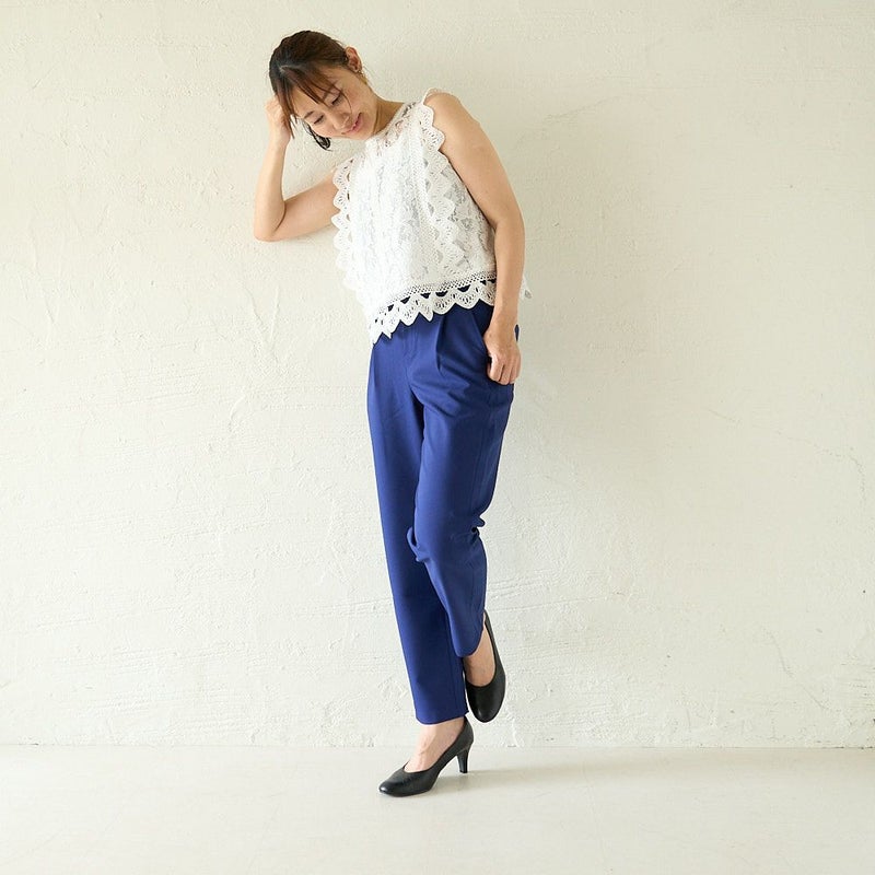 お仕事パンツはこれでOK テパードタックパンツ(ブルーネイビー)