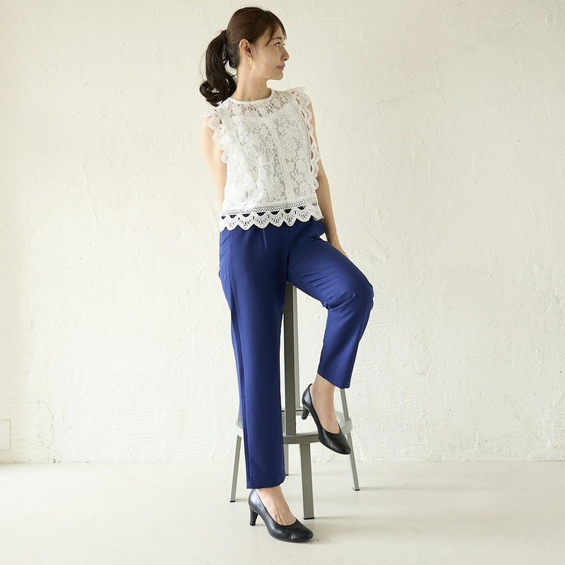 シワになりにくく、軽やかなはき心地。程よくゆとりのあるシルエットで、身体のラインを拾いすぎず、すっきり見せてくれます。