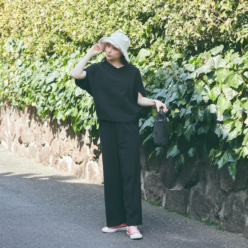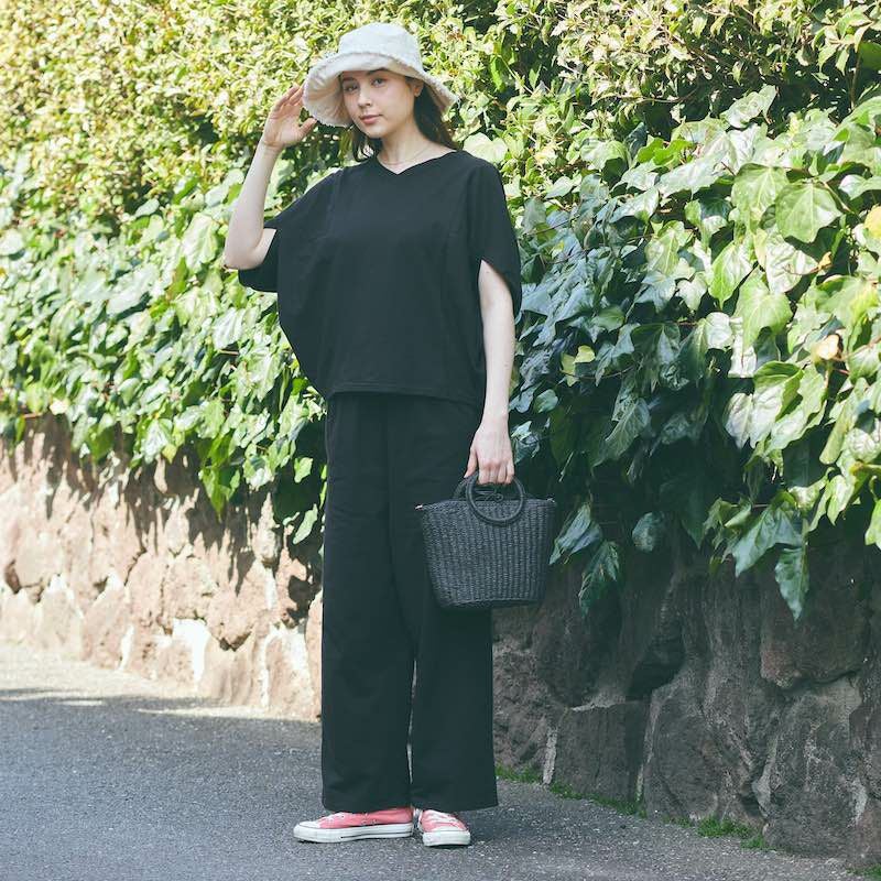 心からリラックス出来る ドルマンTシャツ&パンツ上下セットアップ(ブラック)
