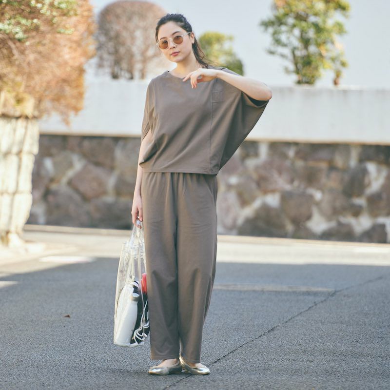 心からリラックス出来る ドルマンTシャツ&パンツ上下セットアップ(ブラック)