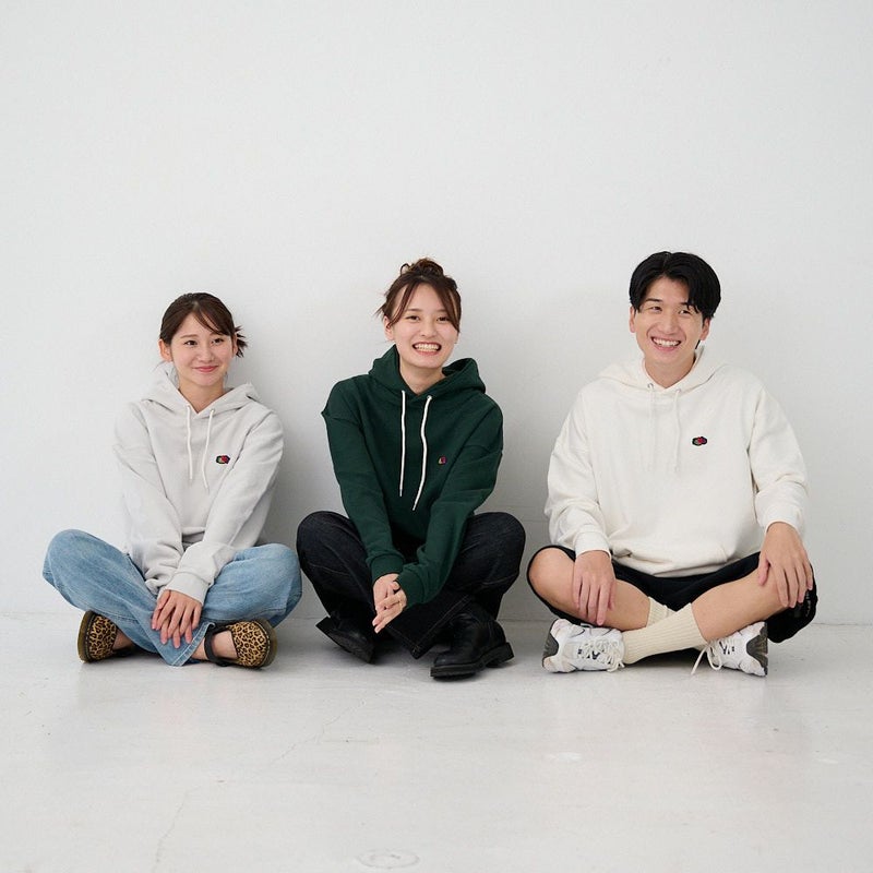 パーカーを着こなす上で大切なのはバランスです。男女ともにゆったり着れるように設計しました。