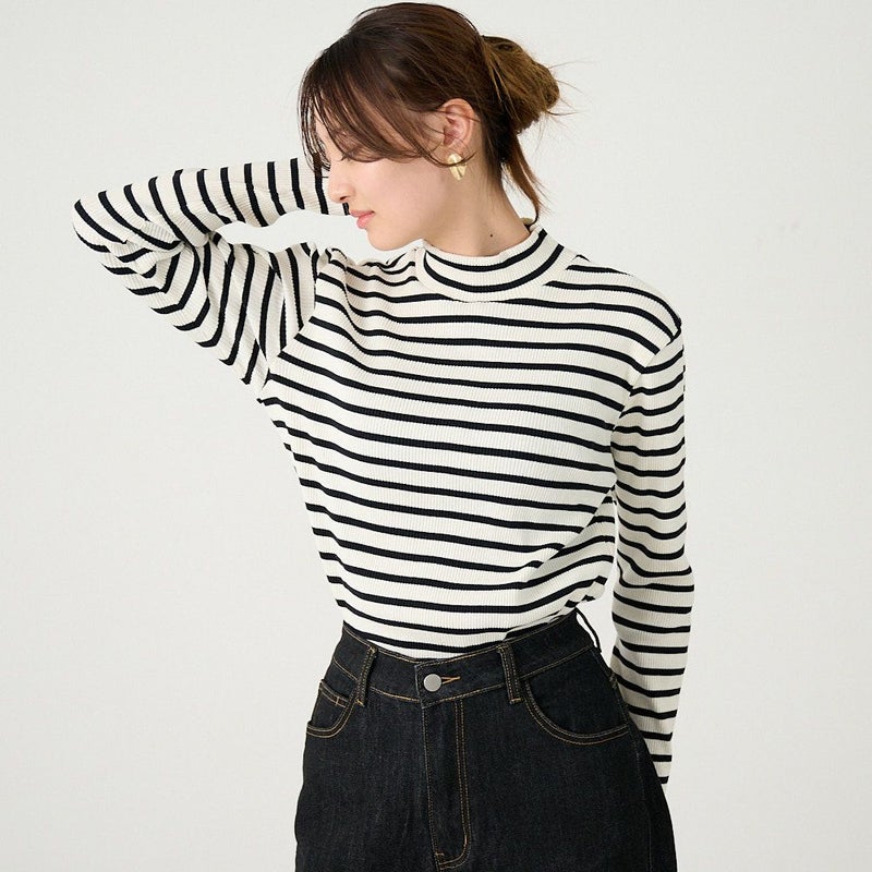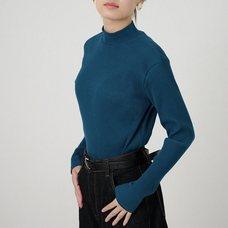 驚くほど伸縮性と柔らかさを実現しているテレコハイネックニット。これまでに2万枚以上販売した人気のアイテムです。