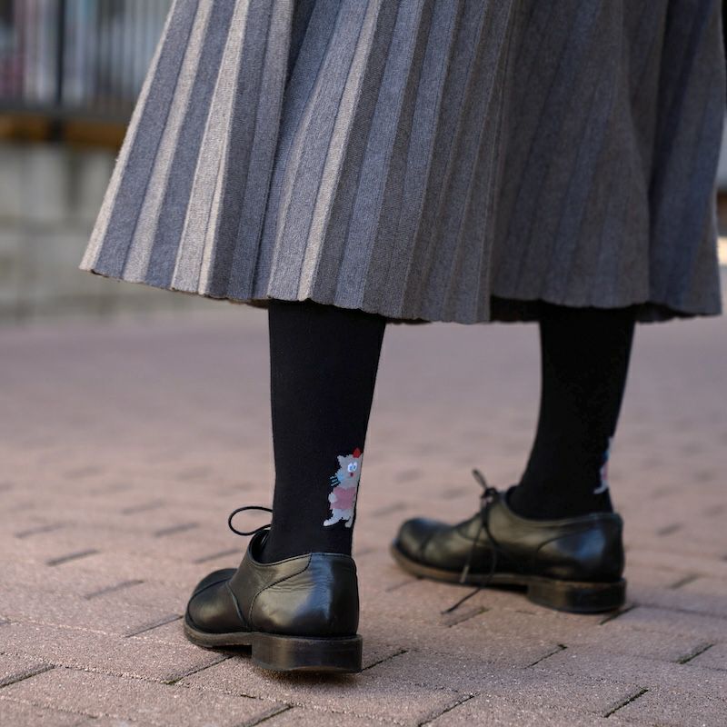 正面から見たら普通の無地のタイツですが、後ろの足元にほっこり。