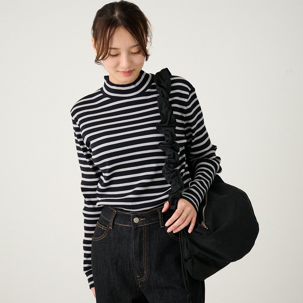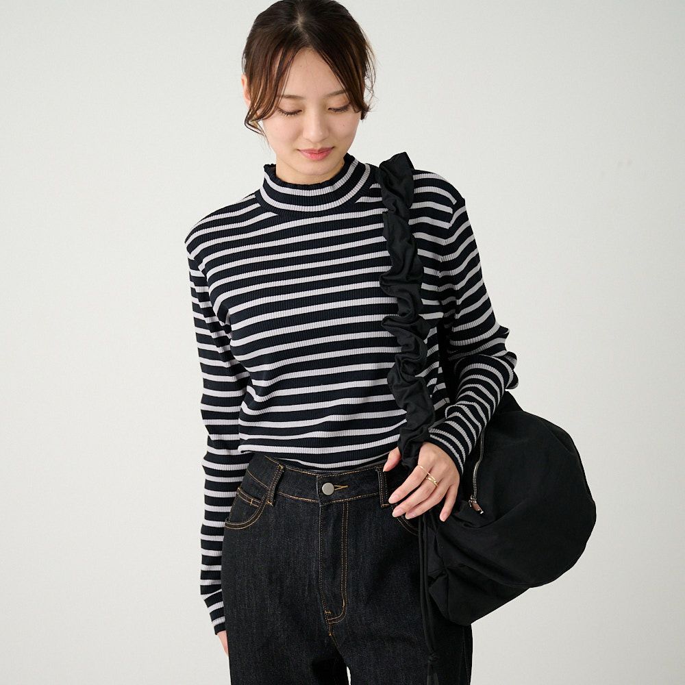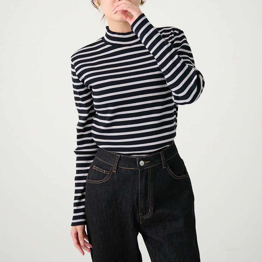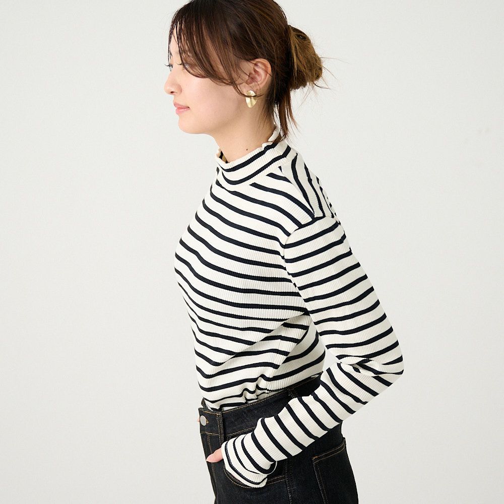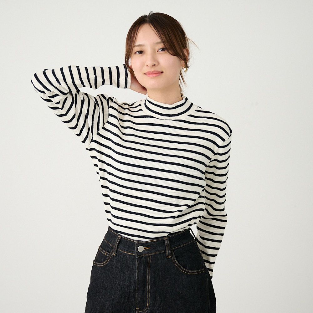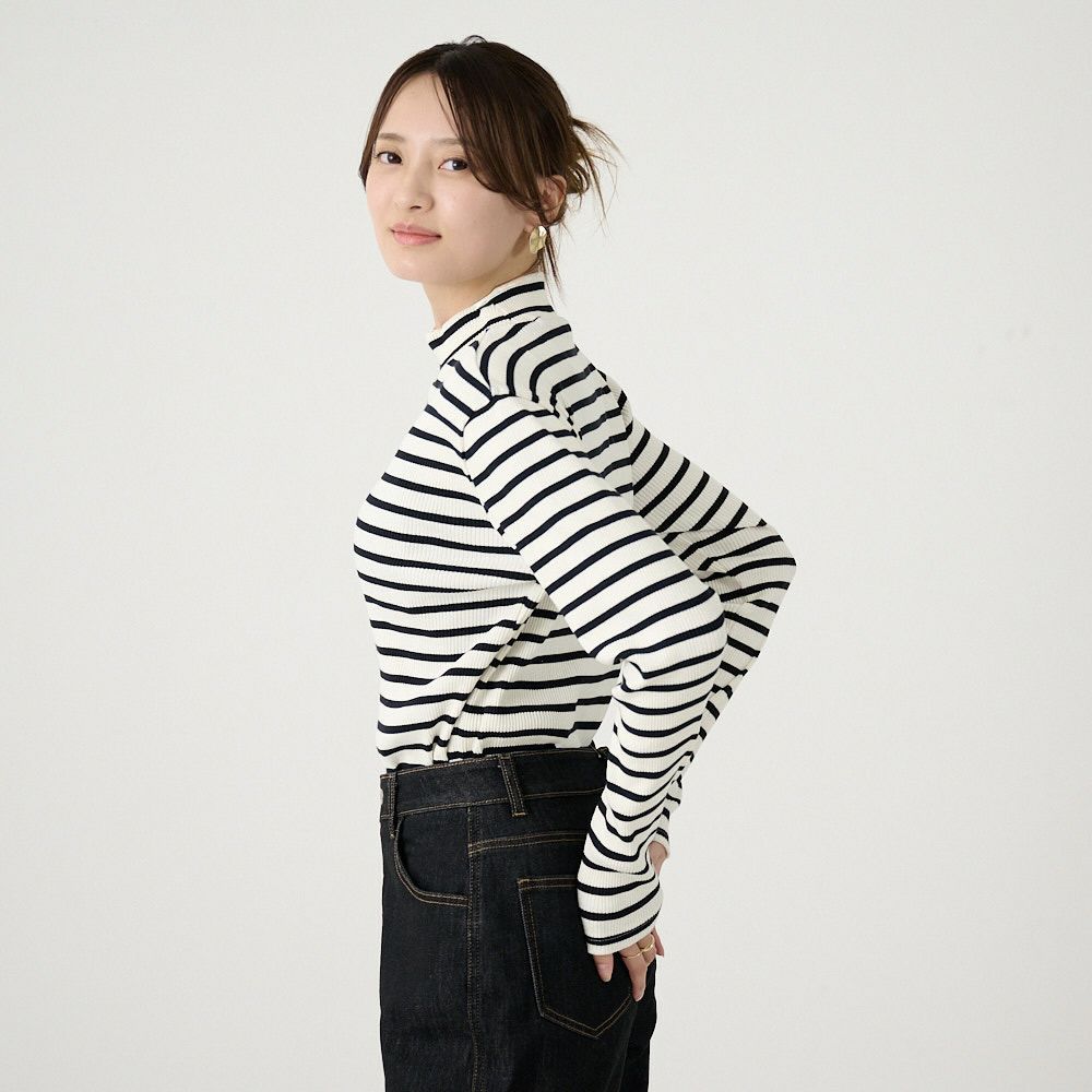 他の画像を見る チクチクしないコットンニット 【3色セット】テレコニット ハイネックトップス(ホワイトボーダー&グレーボーダー&ブルー) 送料無料 お得なセット 20%OFF 定価 ¥ 14,940 のところ ¥ 12,000 税込 お気に入り登録