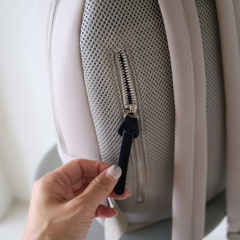 そして一番の優秀なポケットは背中側にある外ポケット。ここからパスケースなど取り出せるので、電車の時などスムーズに通れて便利です。