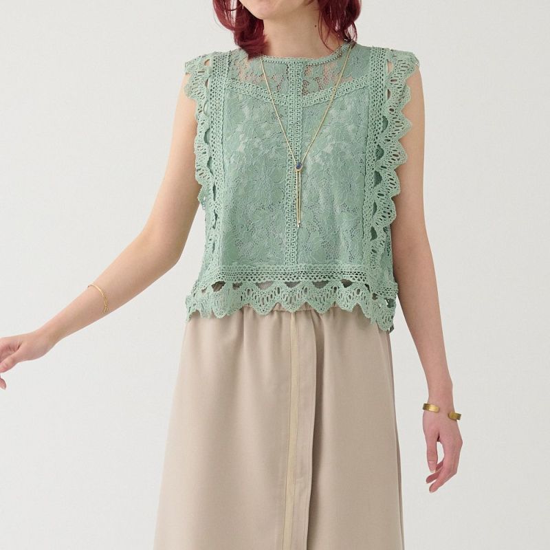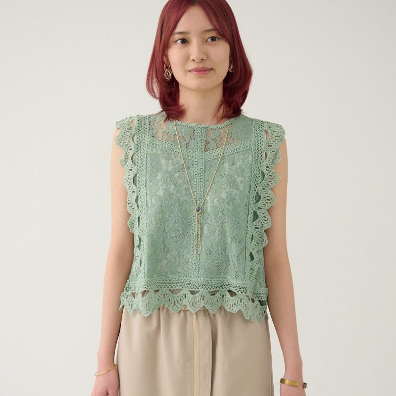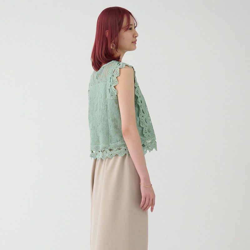 プラスサイズ フラワーレースブラウス(ペールグリーン)