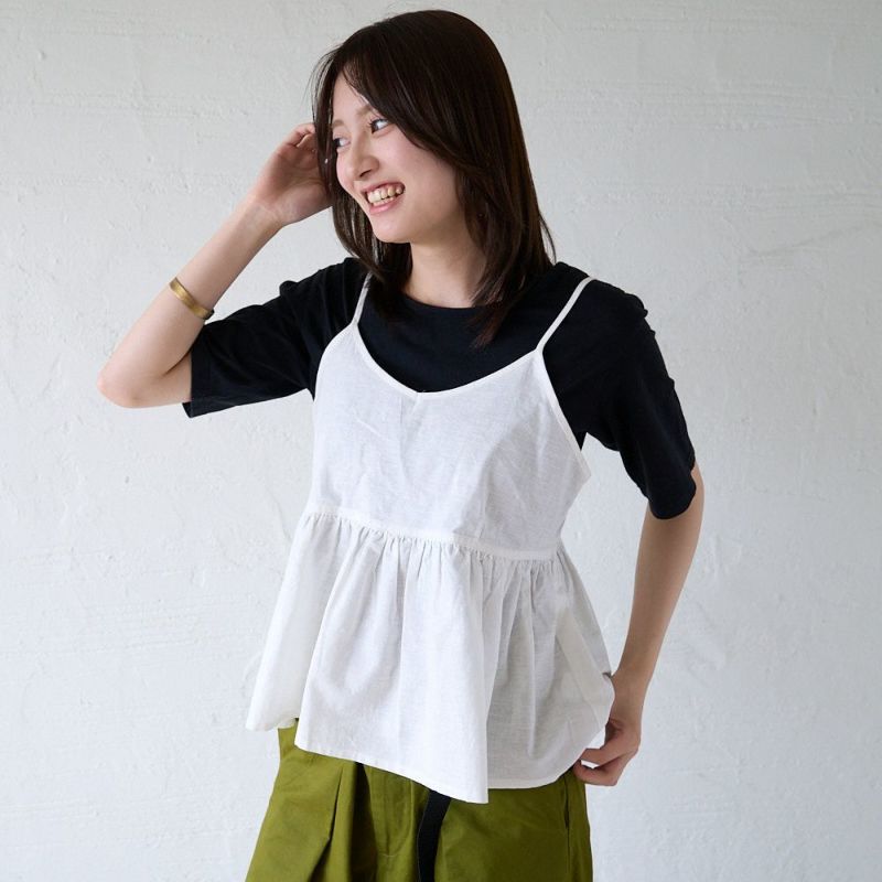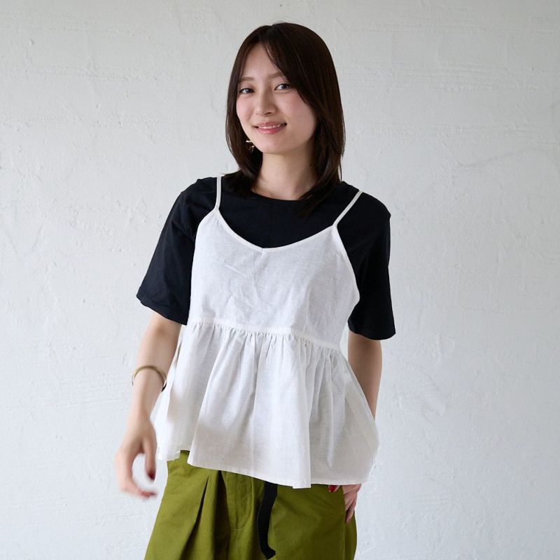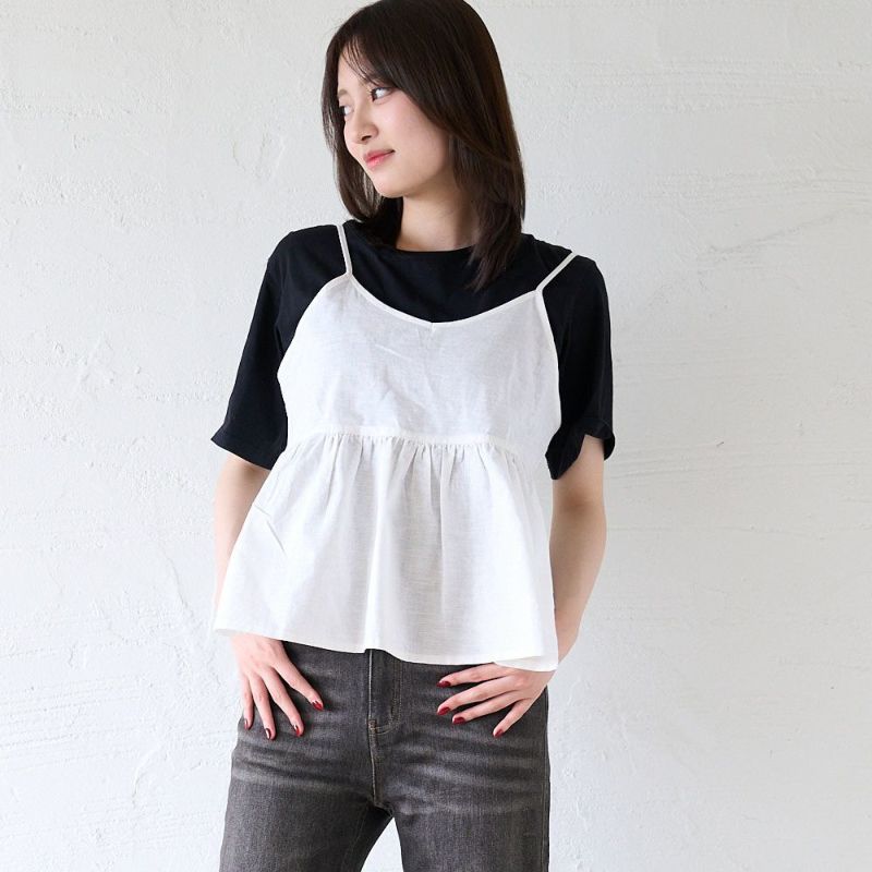 シンプルコーデがぐっと可愛くなる お得なコーデセット(黒Tシャツ×白リネンビスチェ)