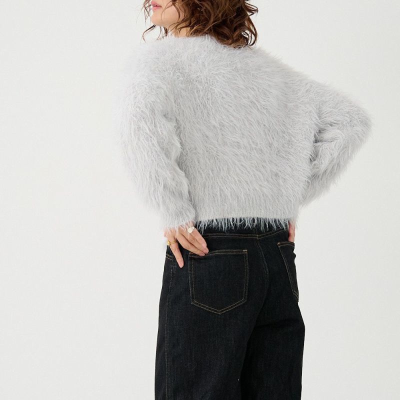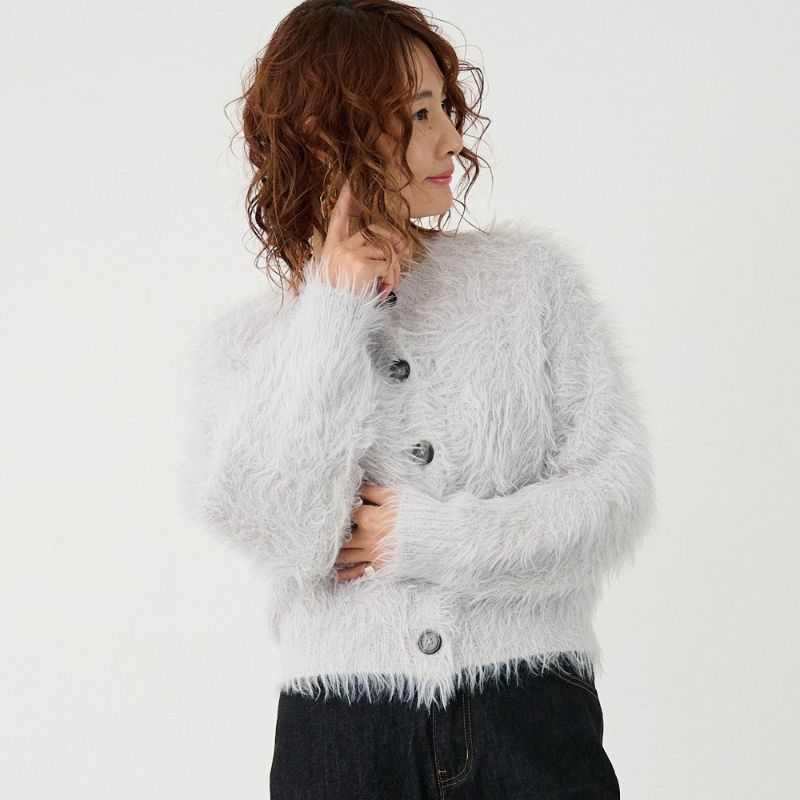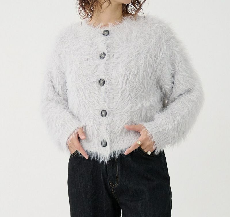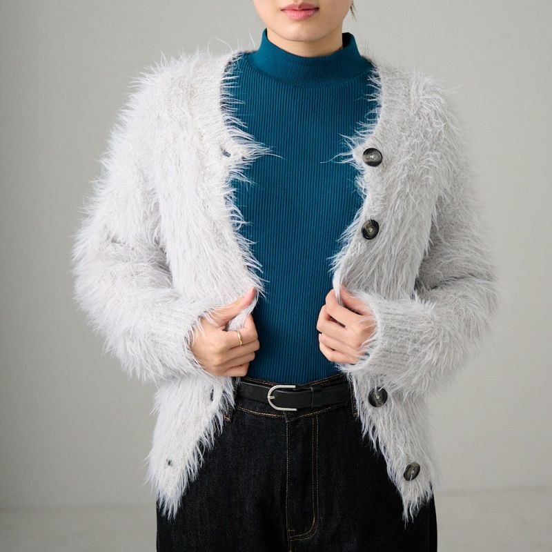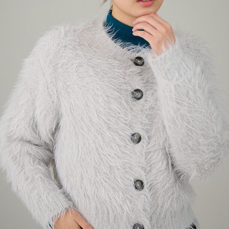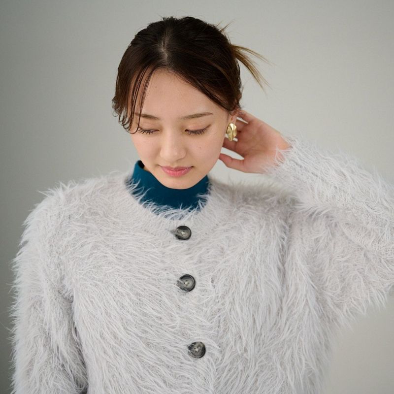 思わず触れたくなるふわふわの毛足と、軽やかな着心地。羽織った瞬間に「わぁ…」と声がもれるような心地よさで、自然と笑顔になっちゃうシャギーニットカーディガンです。