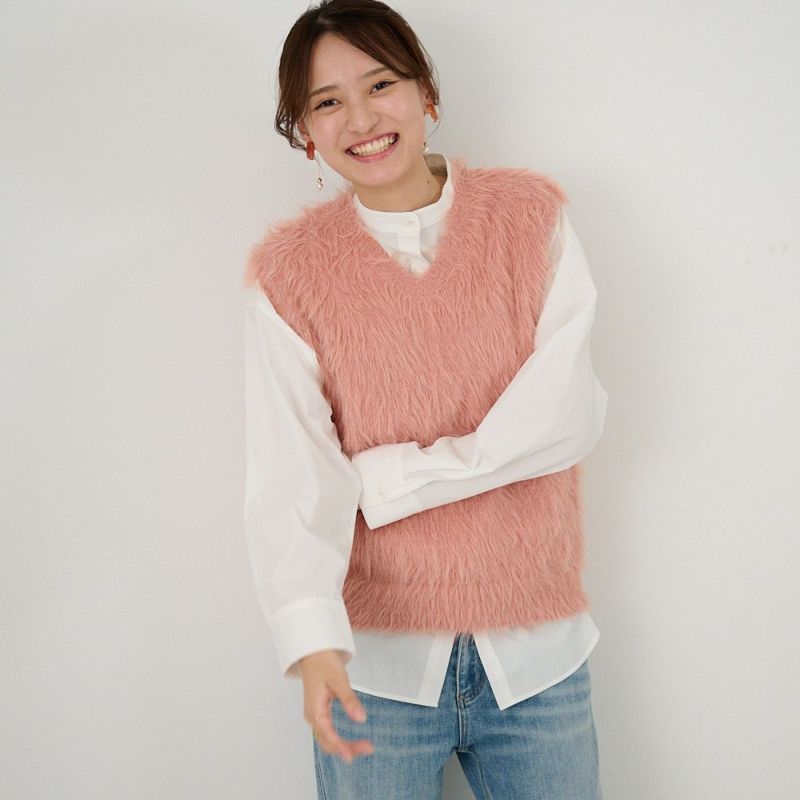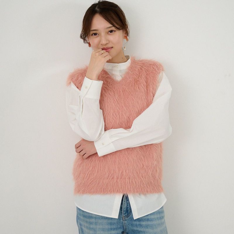 思わず触れたくなるふわふわの毛足と、軽やかな着心地。羽織った瞬間に「わぁ…」と声がもれるような心地よさで、自然と笑顔になっちゃうシャギーベストです。
