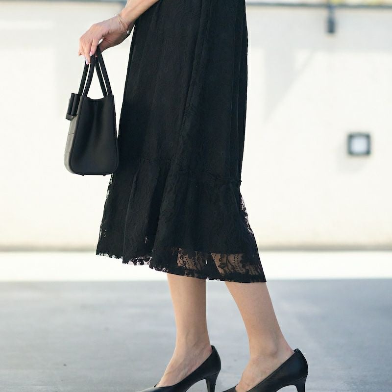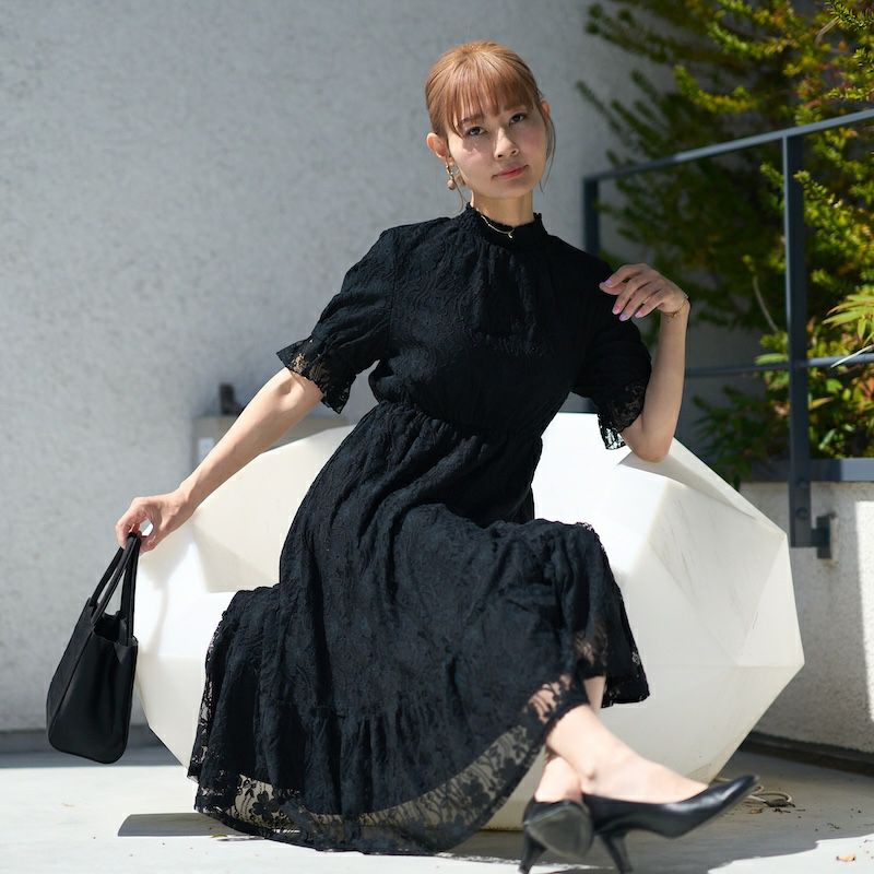 総レースのデザインでモード感と可愛らしさをたっぷりに仕上げたドレスです。