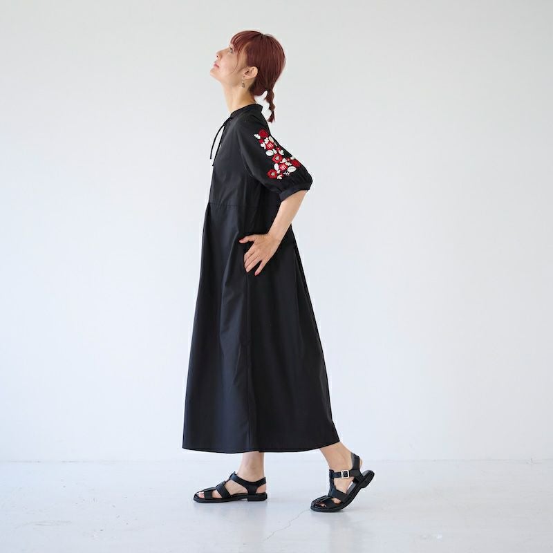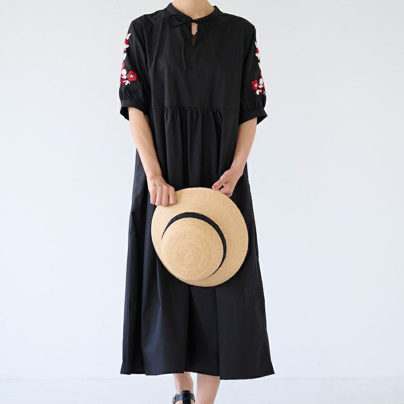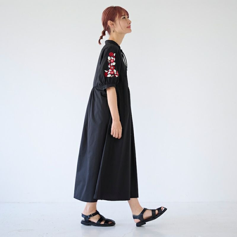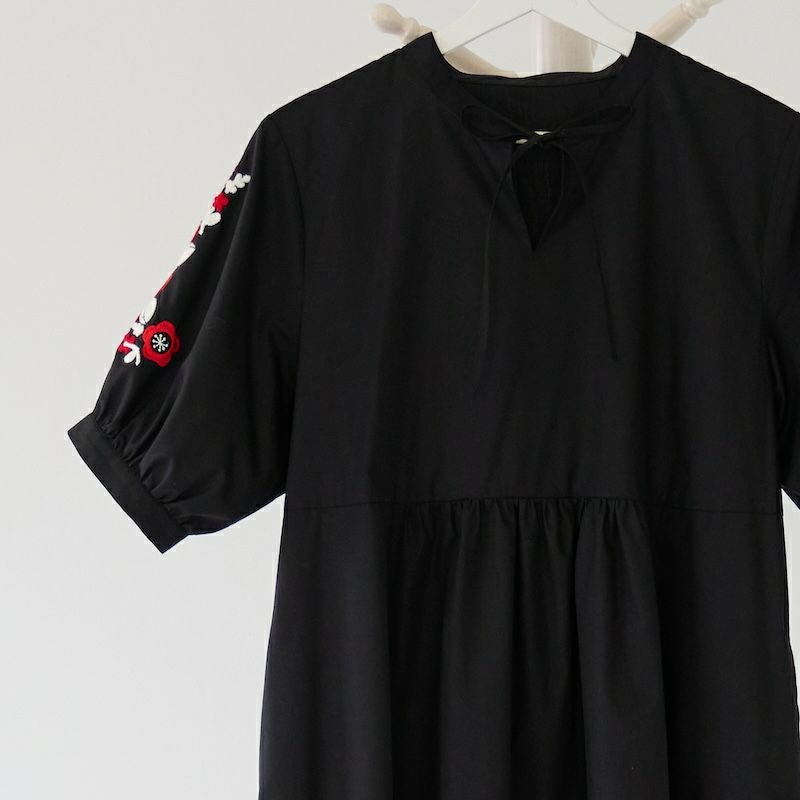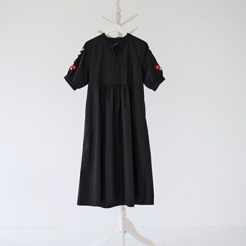 レースが可愛い半袖フォーマルワンピースドレス(ブラック)