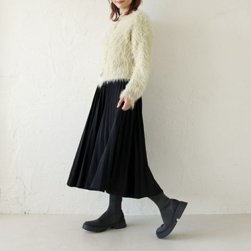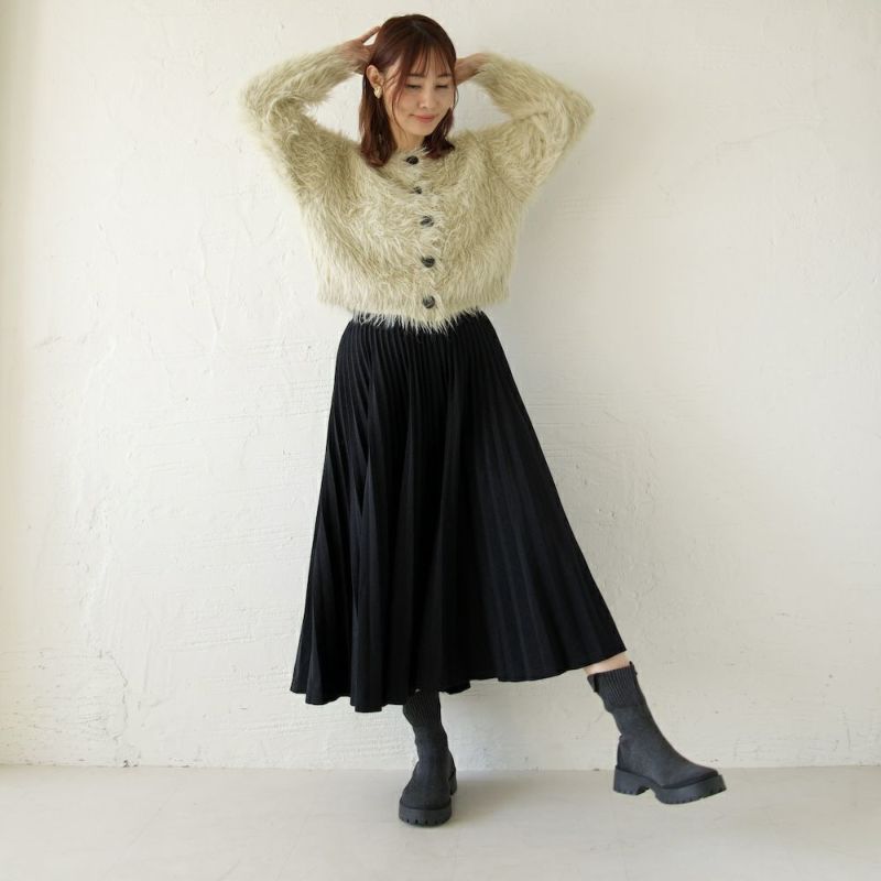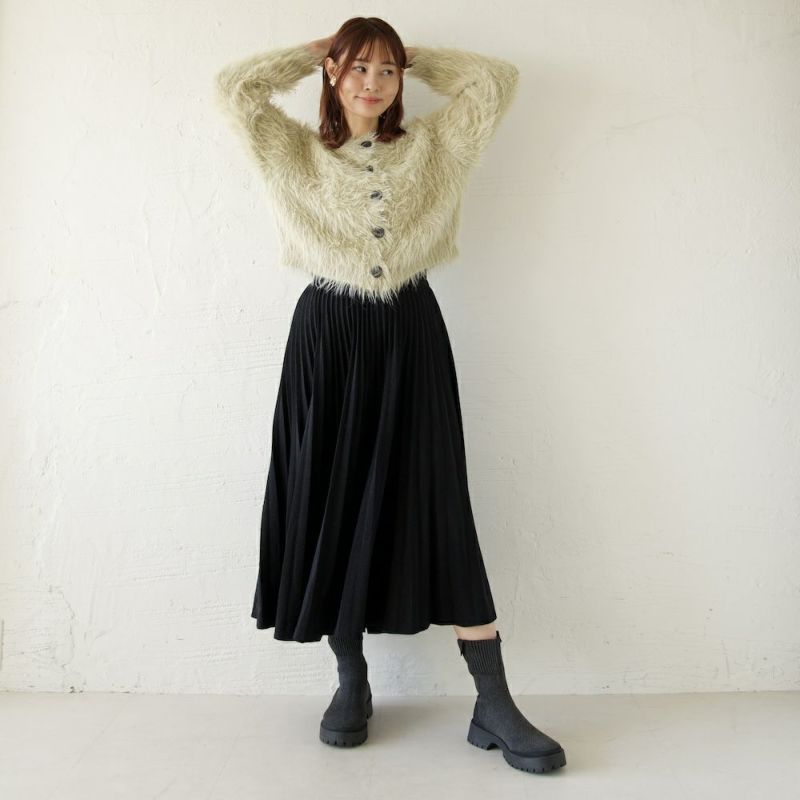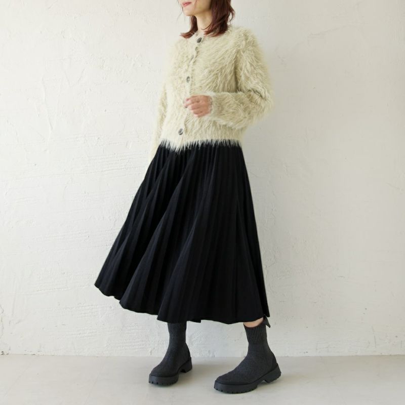 柔らかな印象のプリーツスカートは、ふんわり見えすぎが心配…という方にもおすすめ。