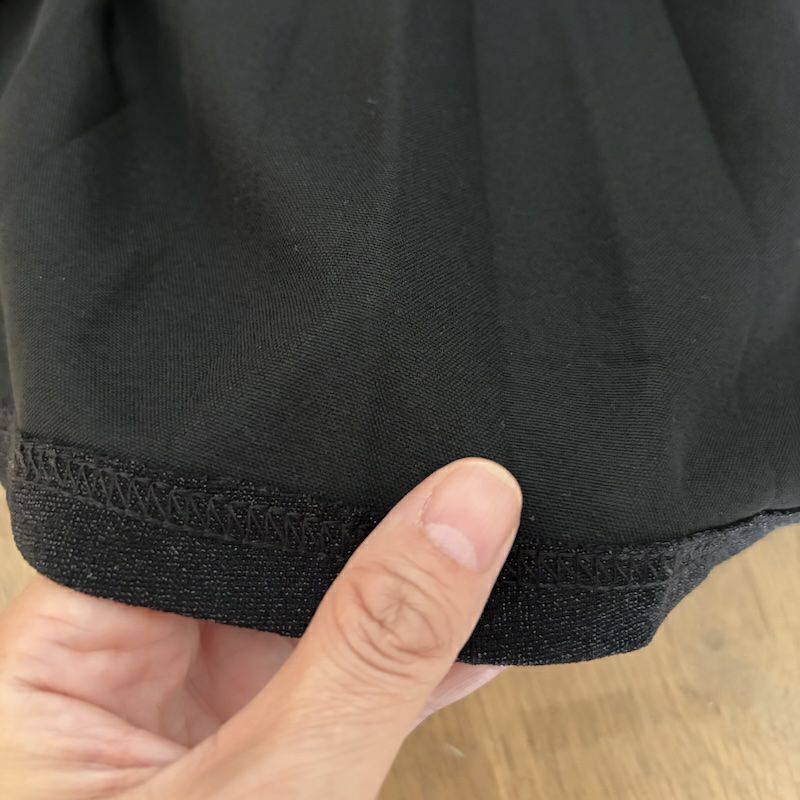 ウエスト後ろ部分はゴム仕様で、長時間の着用もラクラク。