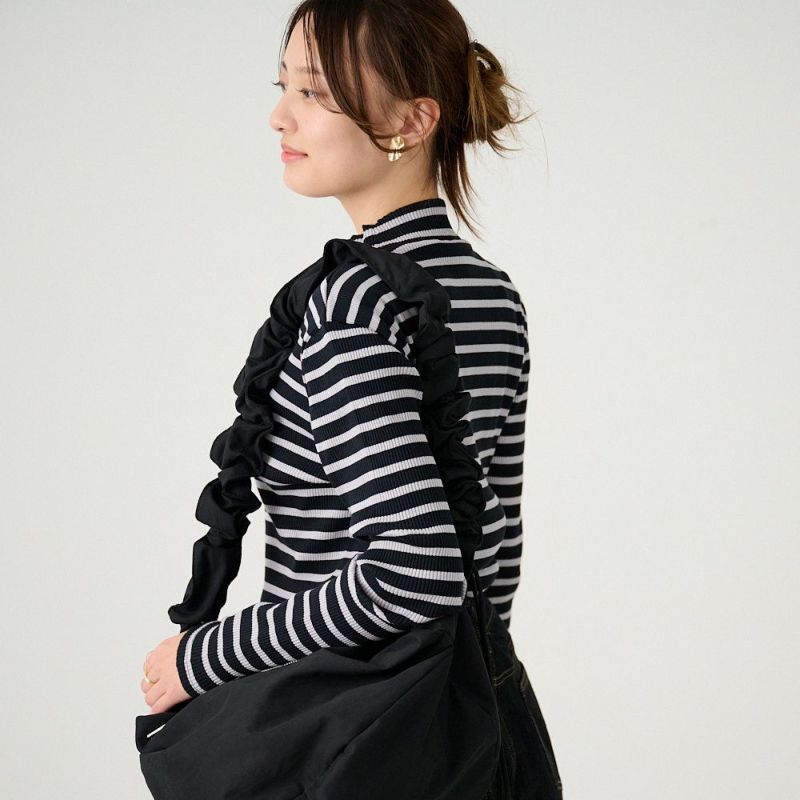 無地はネック部分をリブ素材にしていますが、ボーダーは共生地で作成しております。