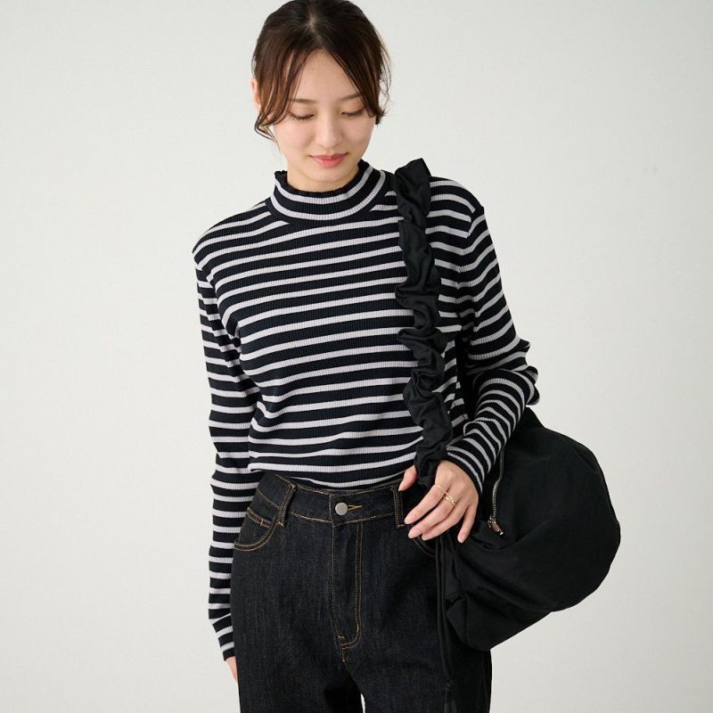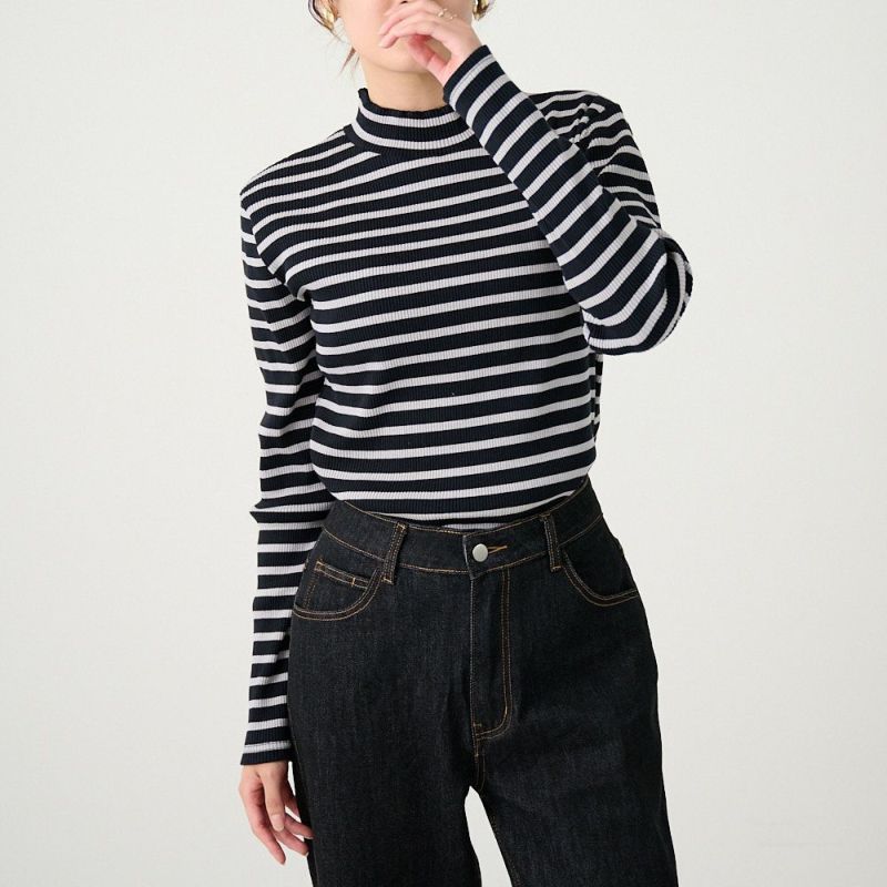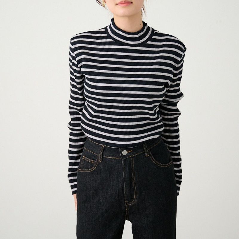 秋冬、とってもオススメなのが、驚くほど伸縮性と柔らかさを実現しているコットンテレコハイネックニットです。