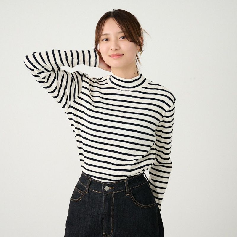 驚くほど伸縮性と柔らかさを実現しているテレコハイネックニット。これまでに2万枚以上販売した人気のアイテムです。