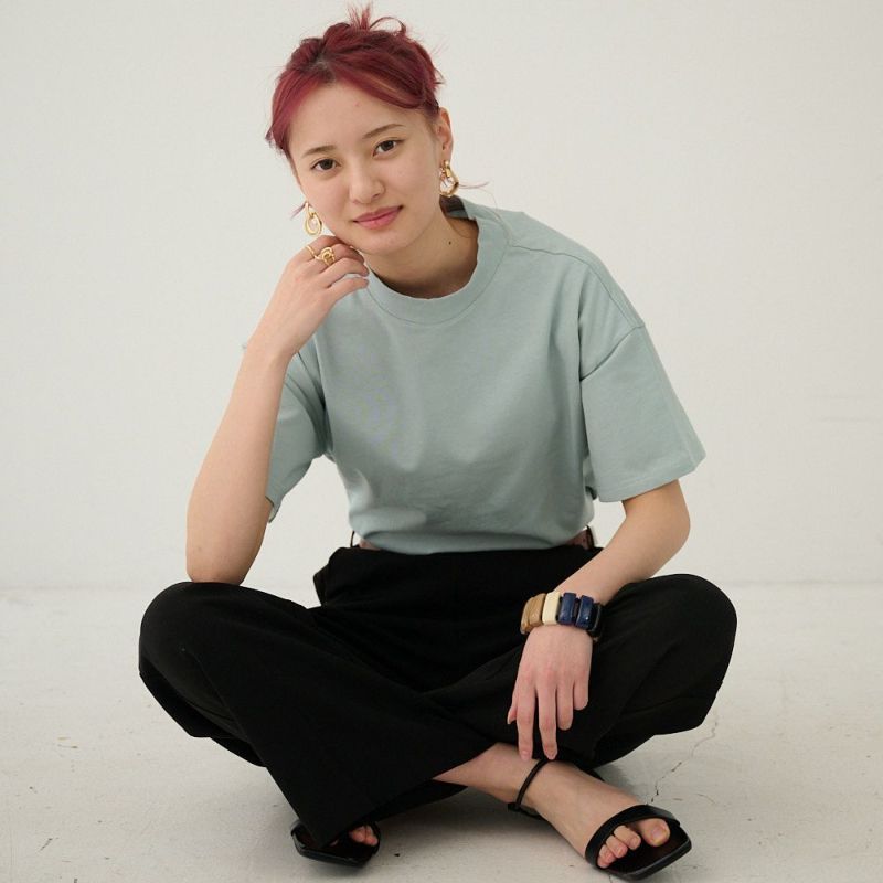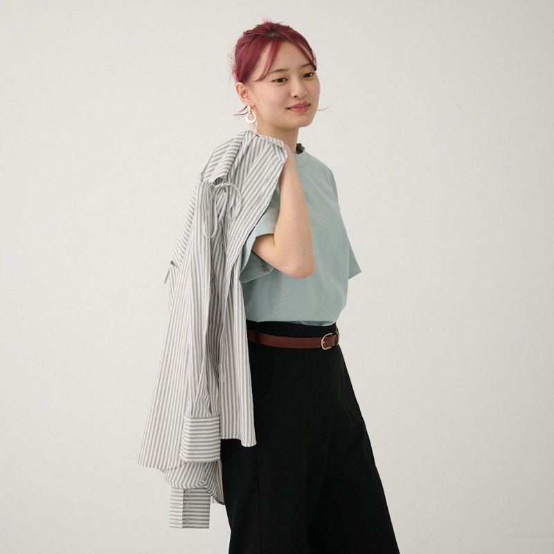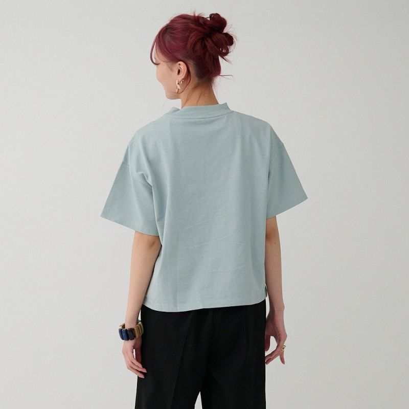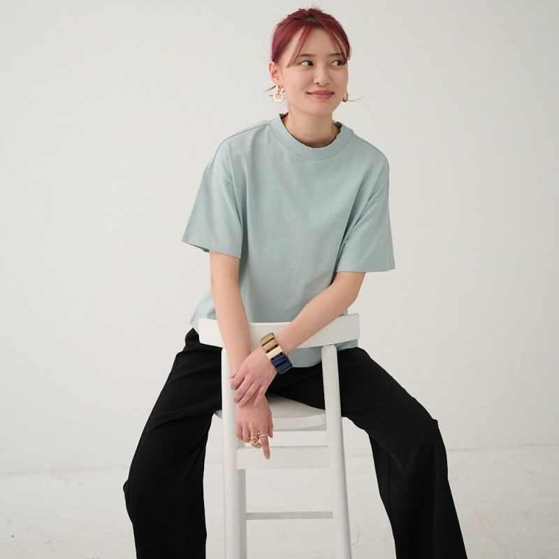 厚手 身体を拾わないハリのある素材 シンプルきれいめモックネックTシャツ(ライトブルー)