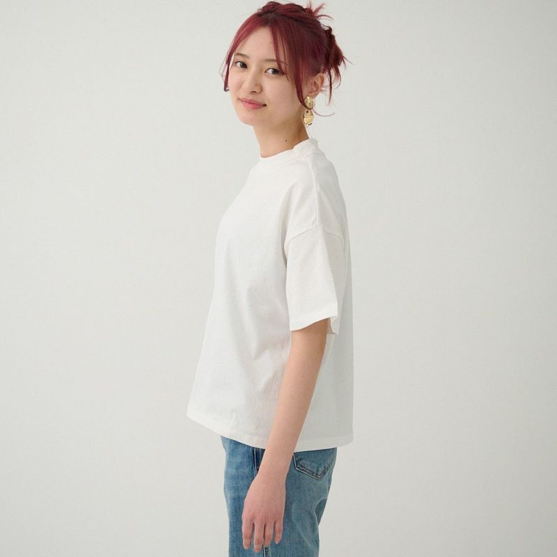 厚手 身体を拾わないハリのある素材 シンプルきれいめモックネックTシャツ(ライトブルー)