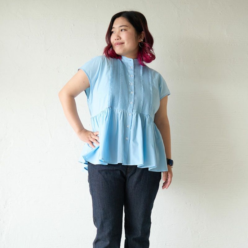 プラスサイズ 大人可愛いピンタックブラウス (ライトブルー)