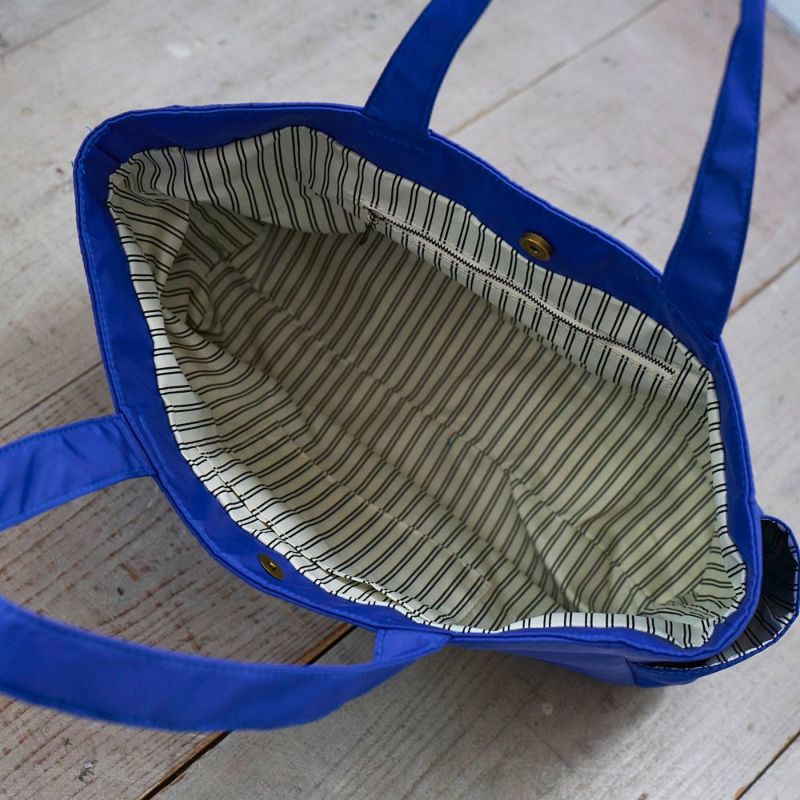 お色に一目惚れしてナイロンブルーを購入しました。合唱の練習に行く時にも楽譜がすっぽりと入ります。他にストールや折りたたみ傘など、何でもポンポン入れて使っています。軽いので、混んでいる電車で持って、立っていても、疲れません。よい買い物をしたと思っています。