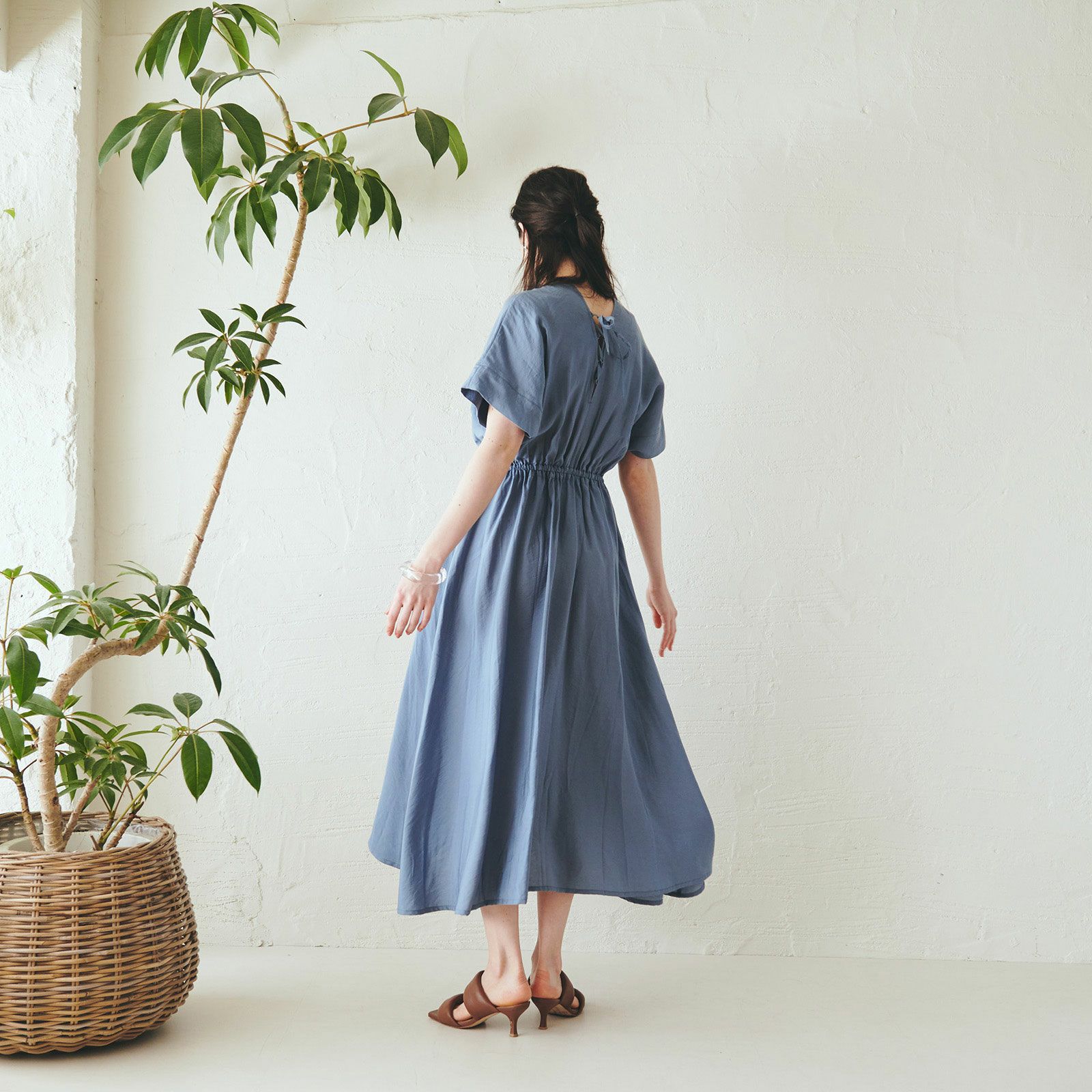 計算されたVネックの開き方とスカートのボリュームが360度美しいシルエットを叶えます。