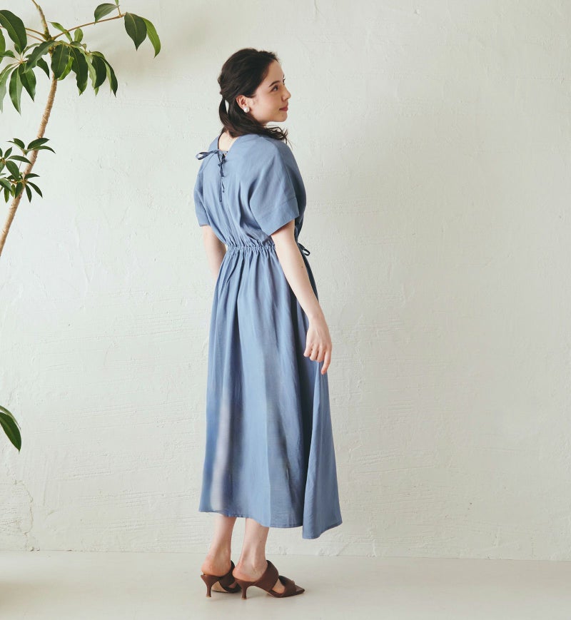 ウエストはゆったりとも着ても、キュッと結んでもok