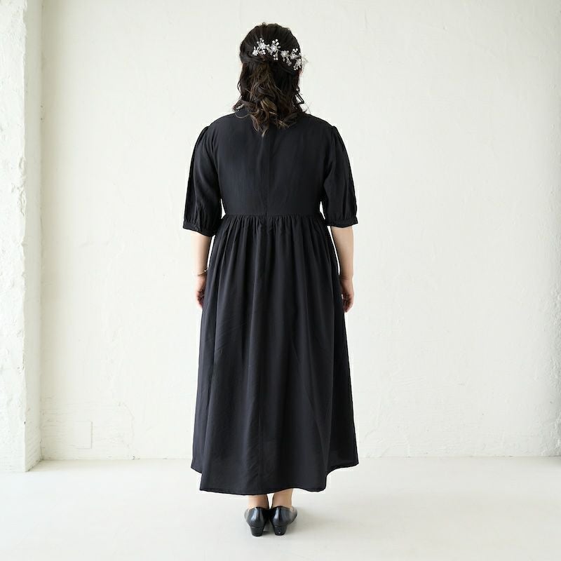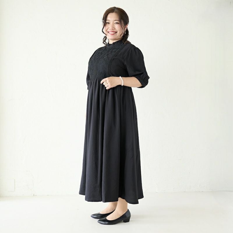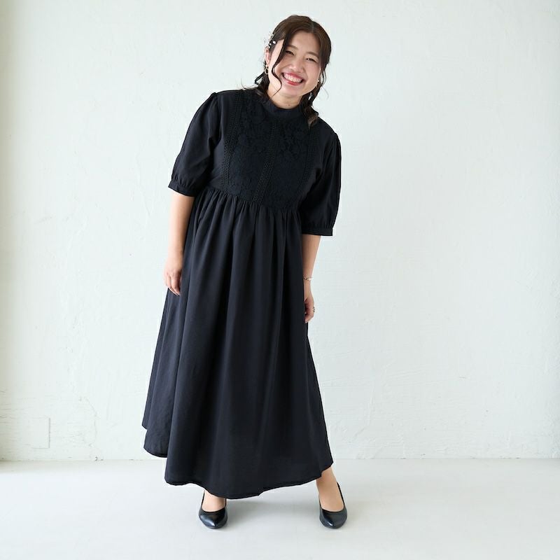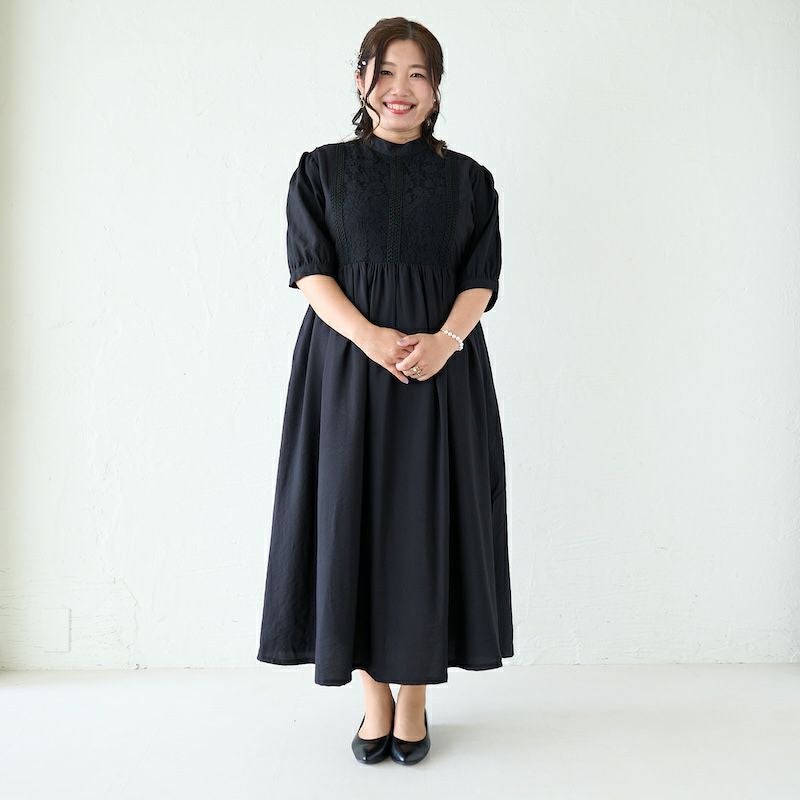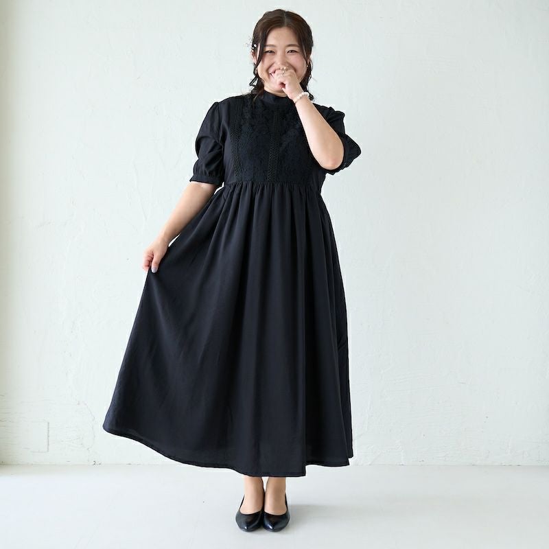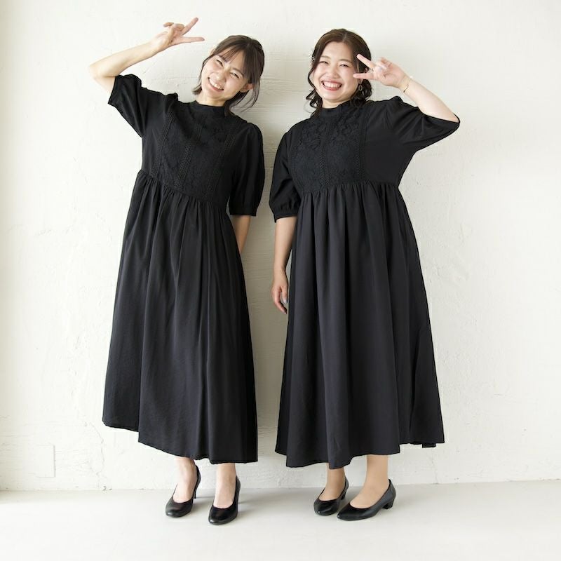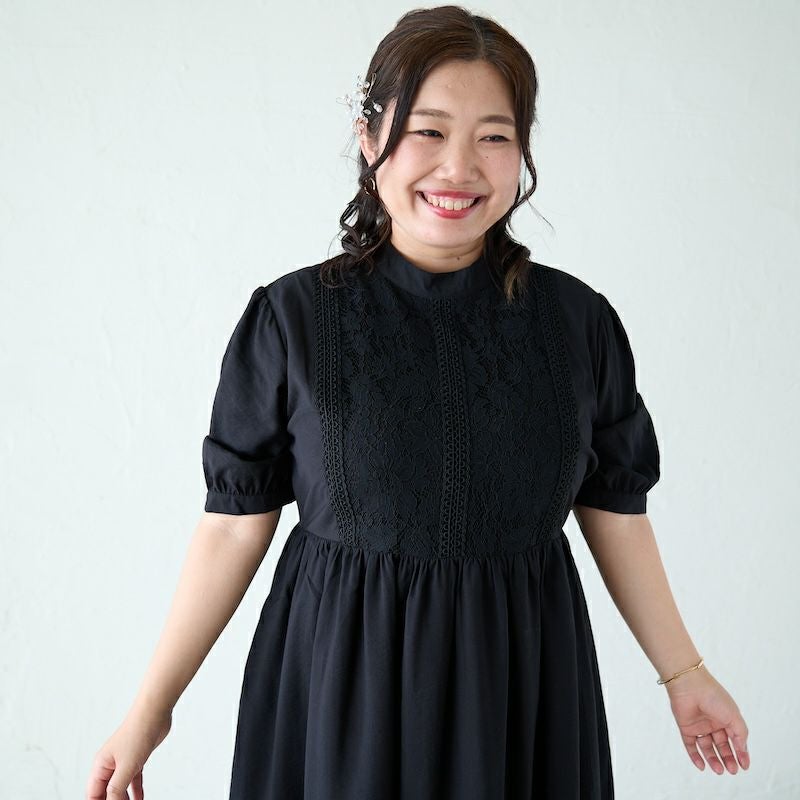 レースが可愛い半袖フォーマルワンピースドレス(ブラック)
