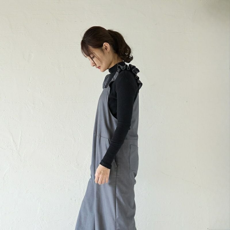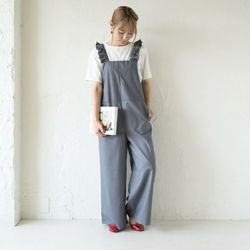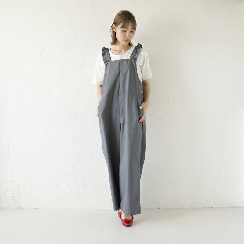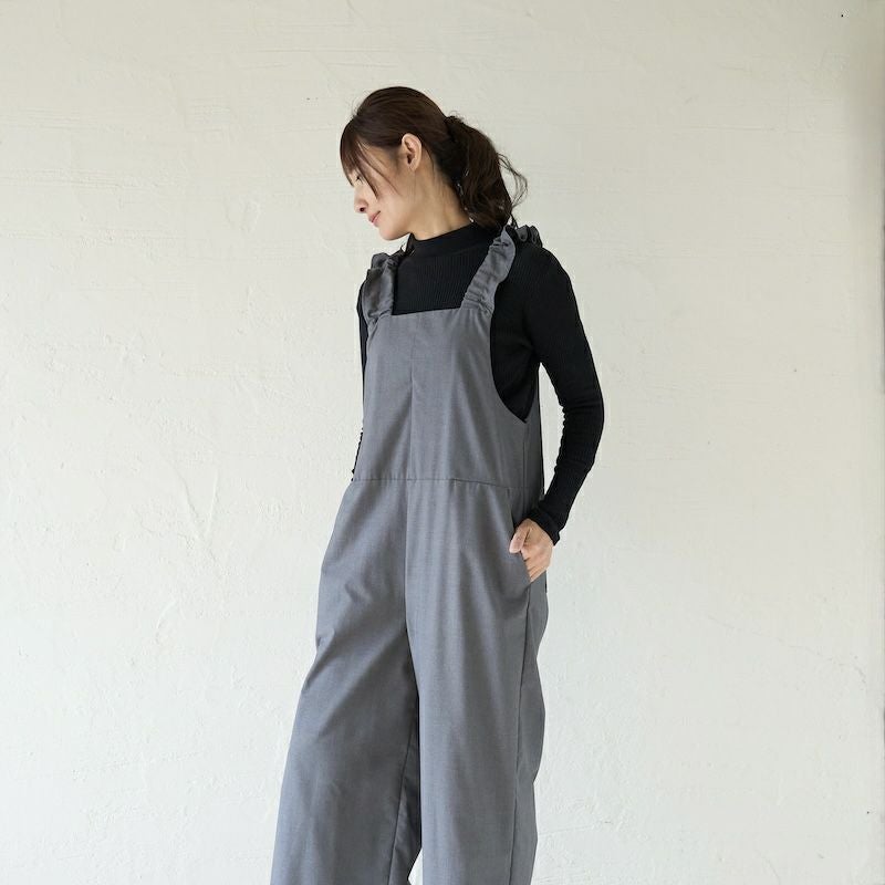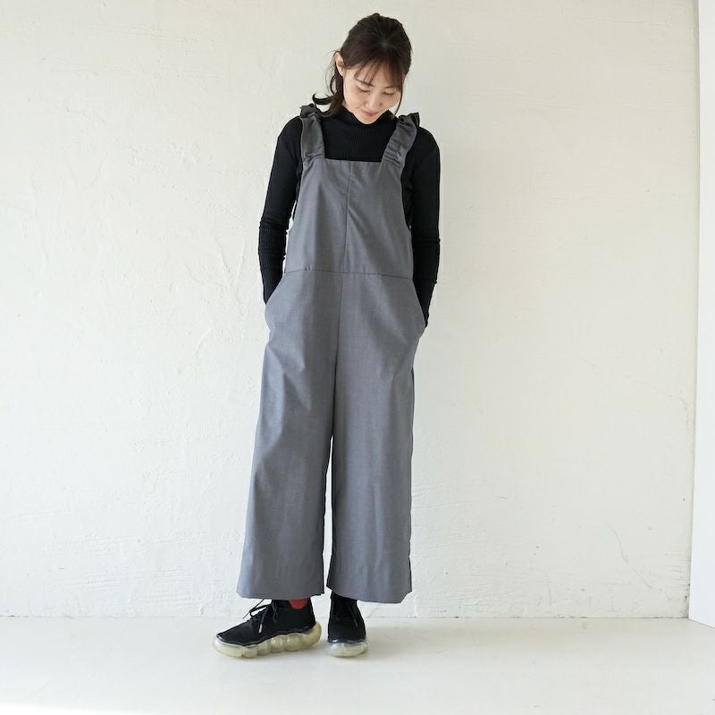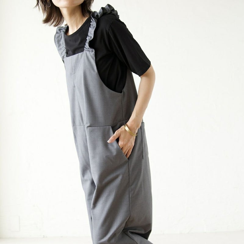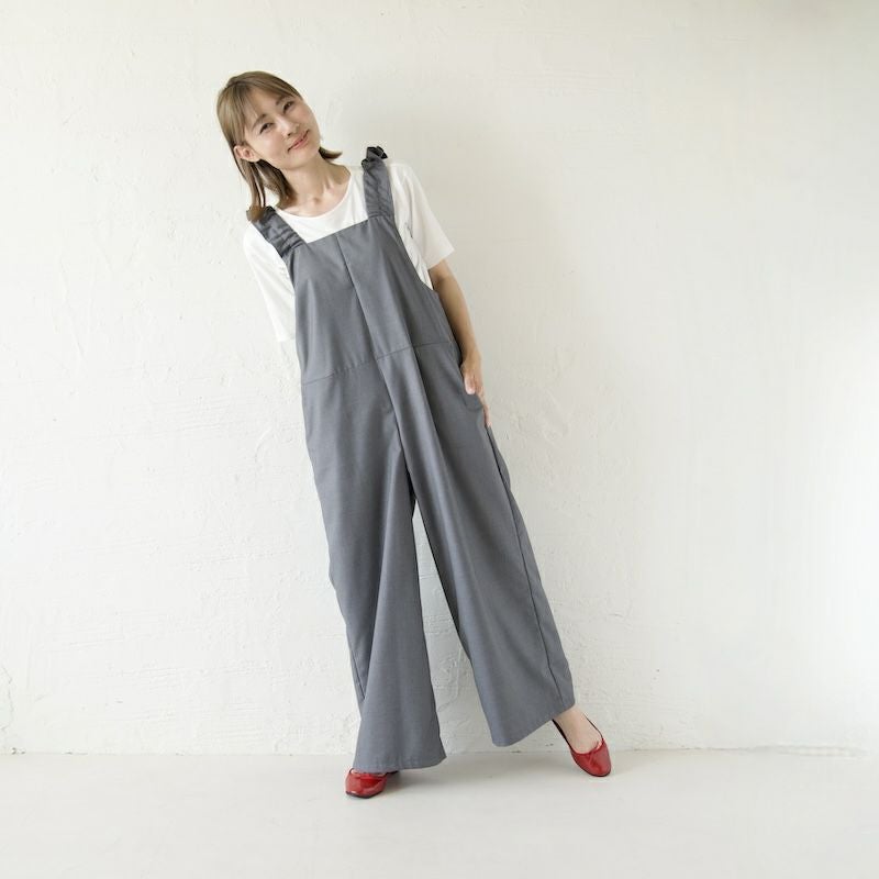 きれい目の素材と、凛としたかっこよさ、そして可愛らしさを備えたサロペットに仕上がりました。