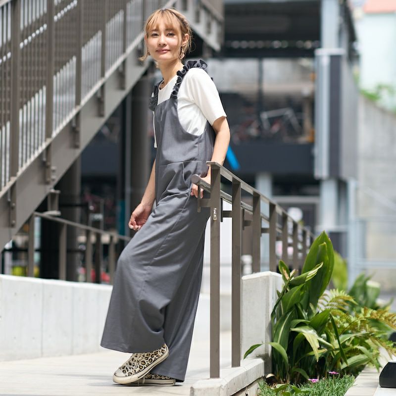 大人かわいいスタイルのサロペットパンツ