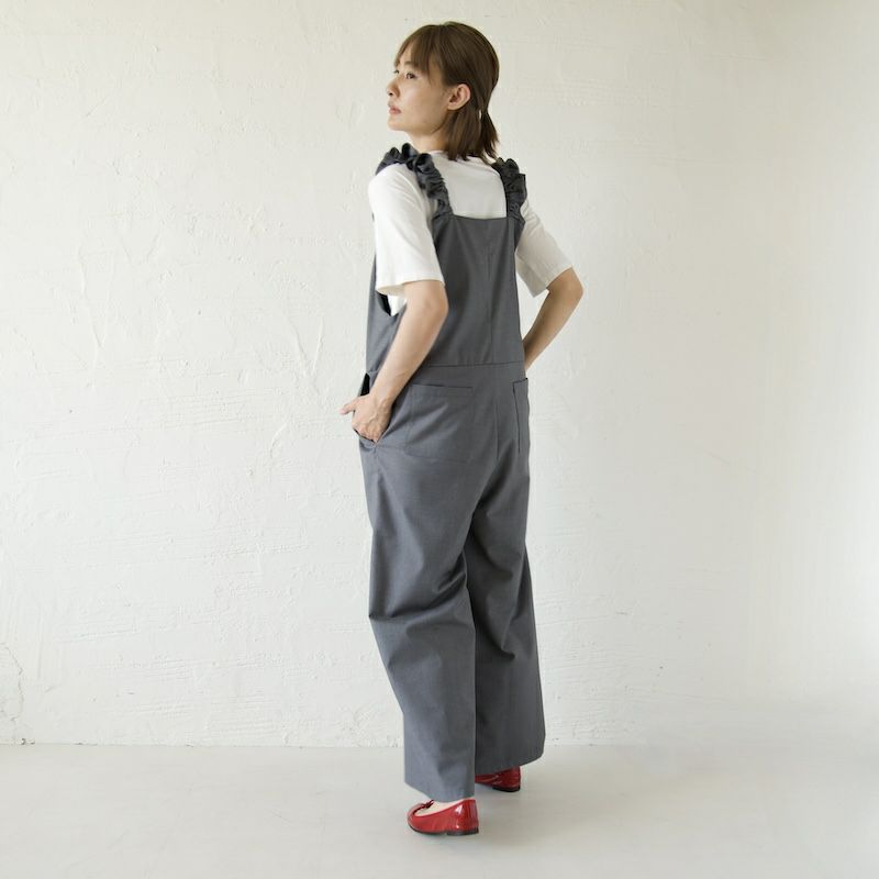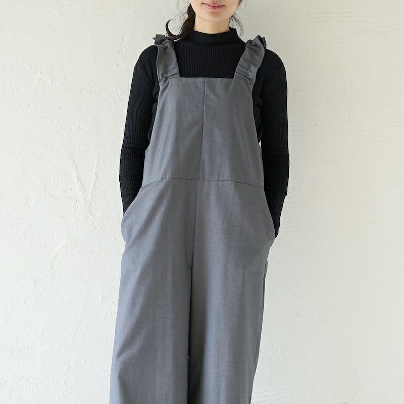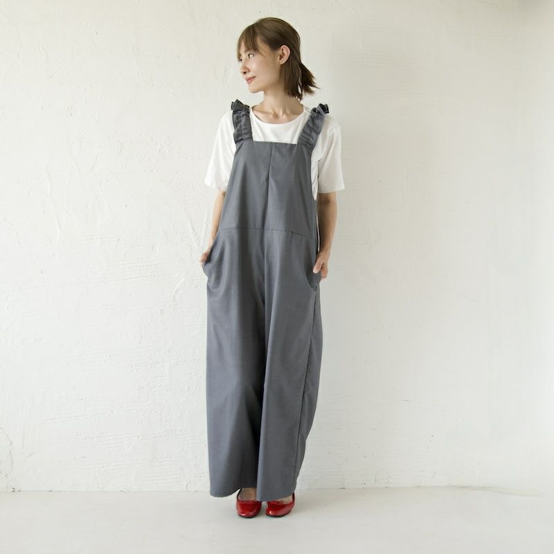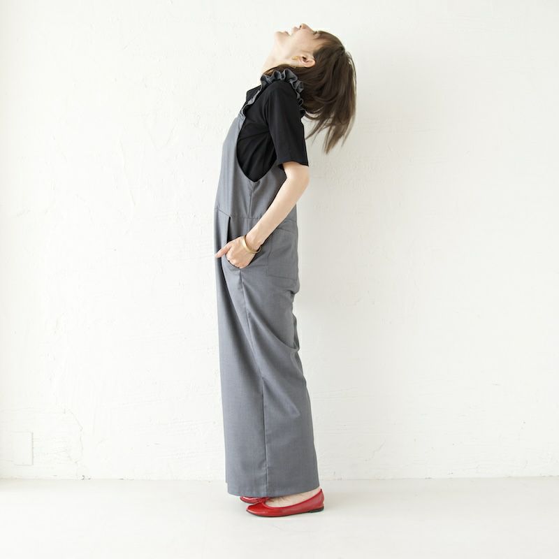 きれい目の素材と、凛としたかっこよさ、そして可愛らしさを備えたサロペットに仕上がりました。